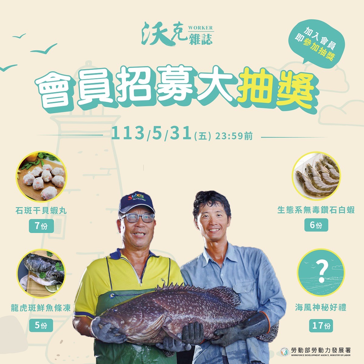 即日起至5月31日前加入沃克雜誌會員,就有機會抽【膠原蛋白upup】的石斑魚和各種海風神秘好禮喔!