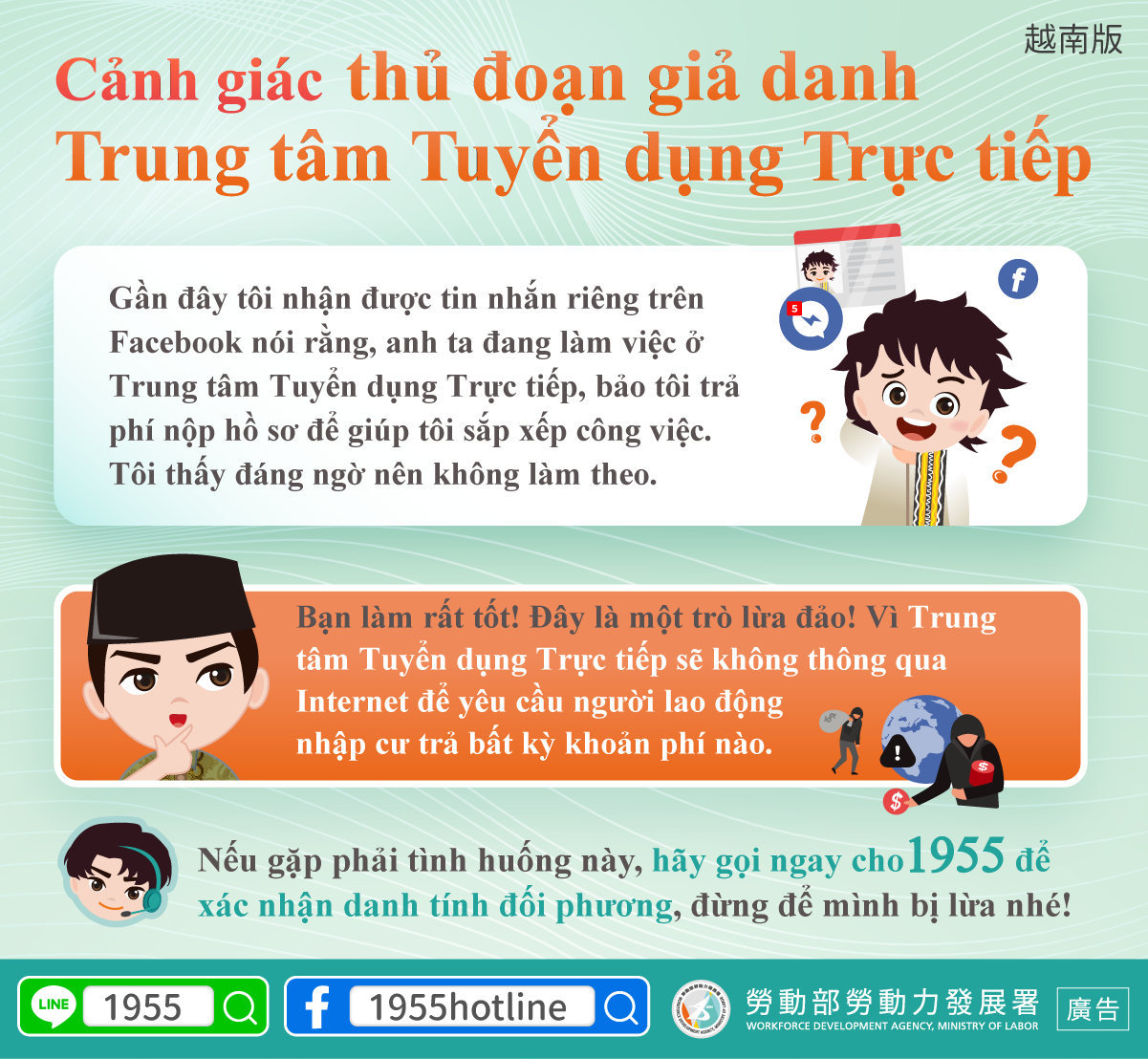 Bạn làm rất tốt! Đây là một trò lừa đảo! Vì Trung tâm Tuyển dụng Trực tiếp sẽ không thông qua Internet để yêu cầu người lao động nhập cư trả bất kỳ khoản phí nào.