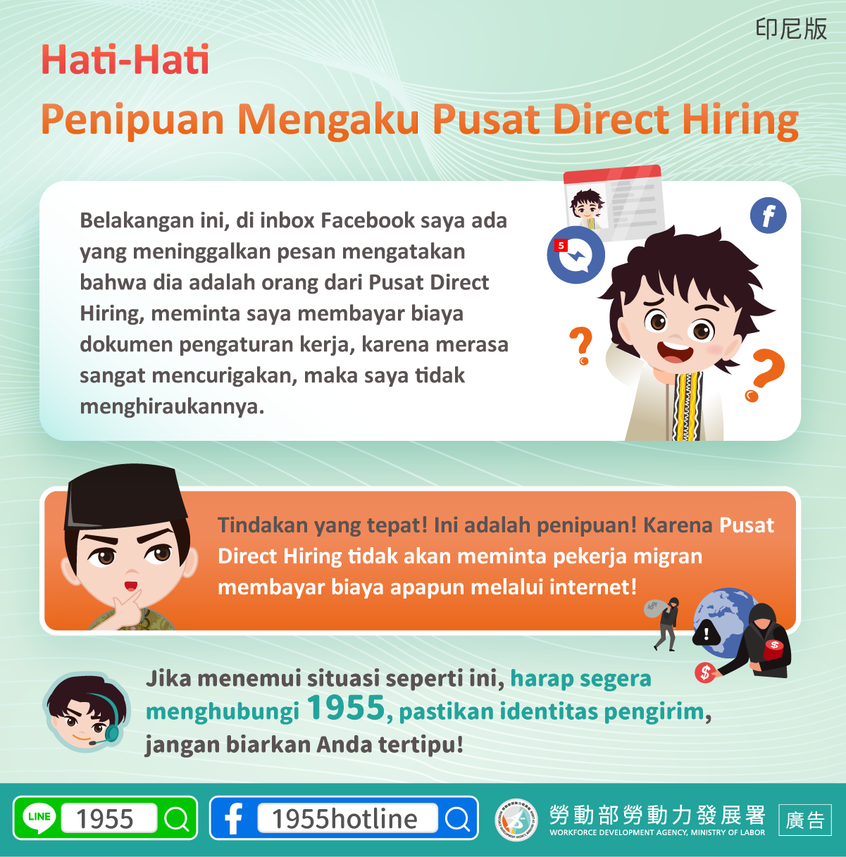 Tindakan yang tepat! Ini adalah penipuan! Karena Pusat Direct Hiring tidak akan meminta pekerja migran membayar biaya apapun melalui internet!