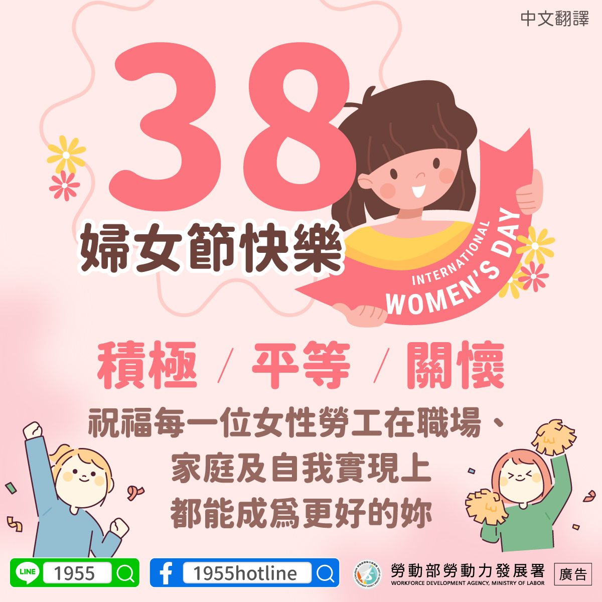 祝福每一位女性勞工在職場、家庭及自我實現上都能成為更好的妳
