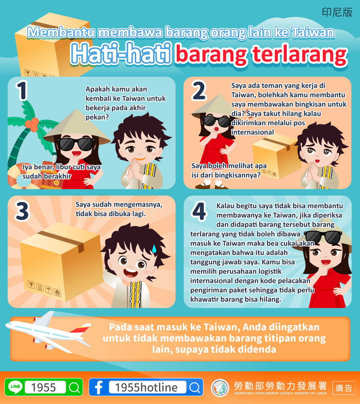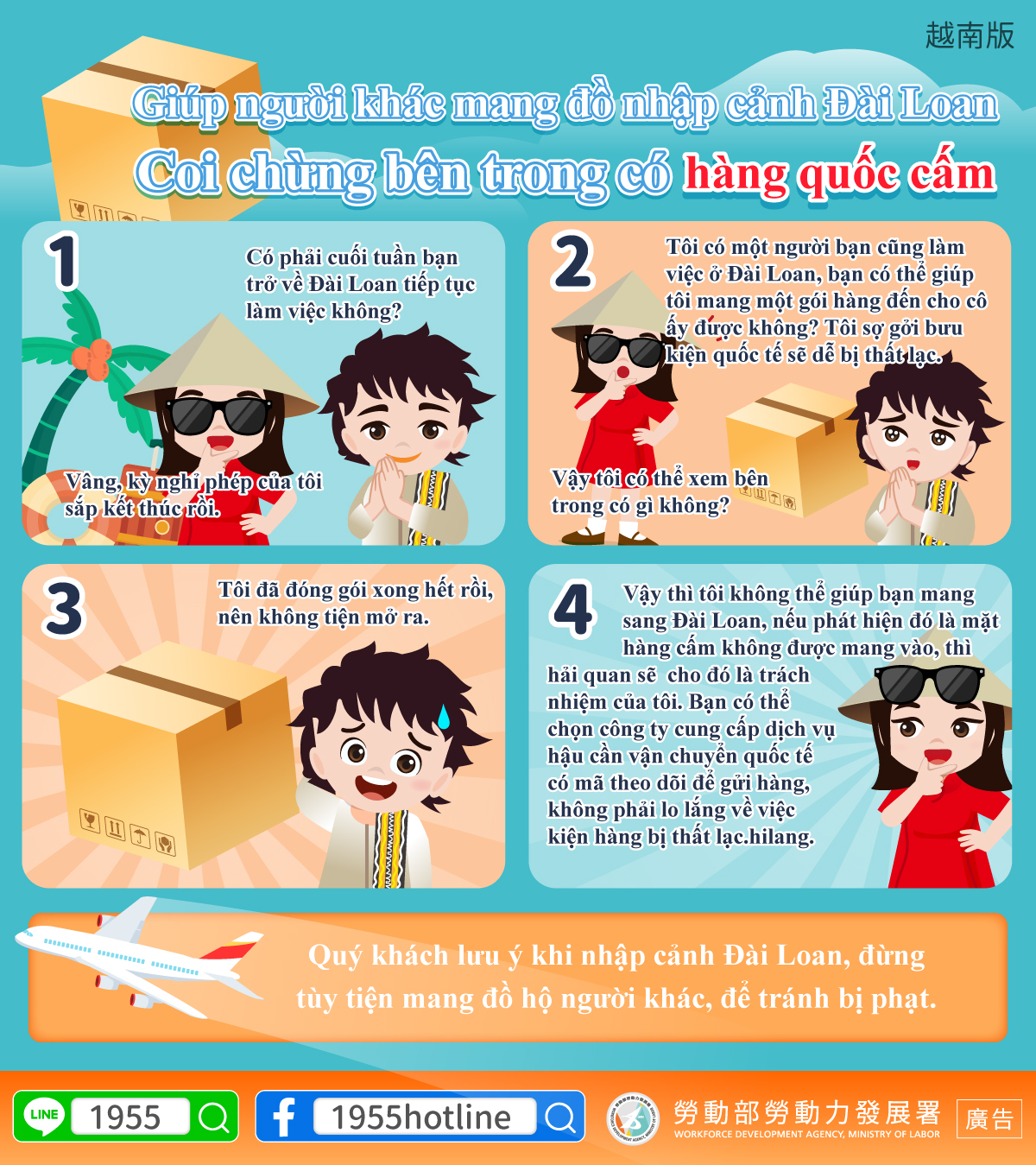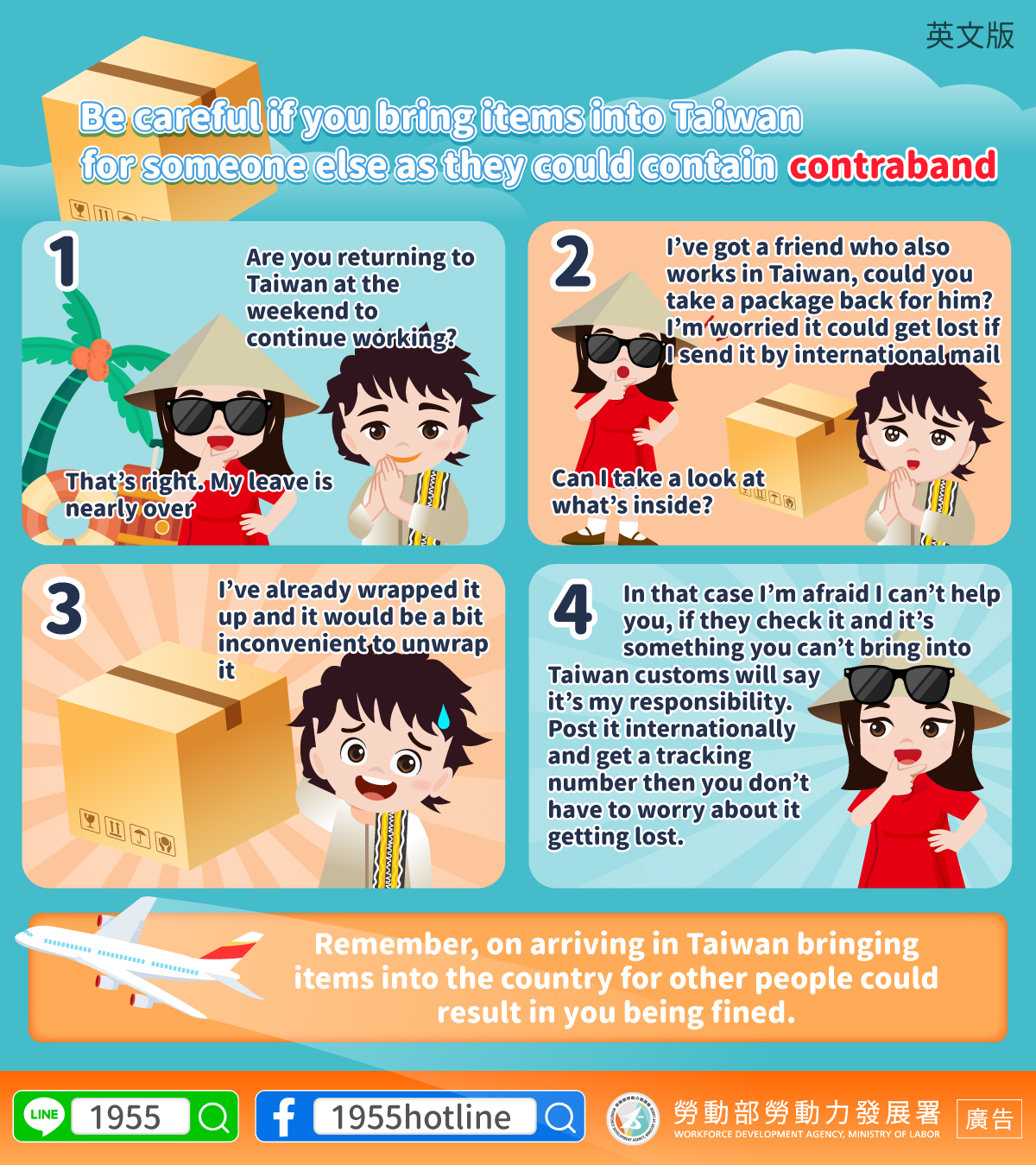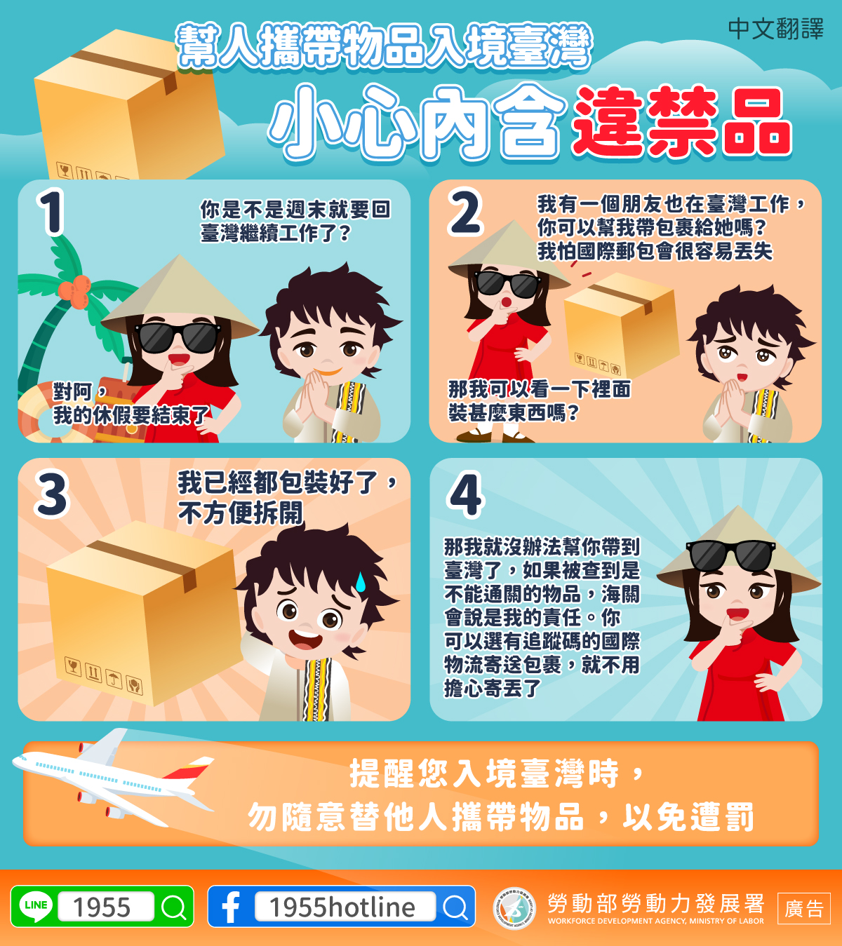 LINE@移點通-幫人攜帶物品入境臺灣小心內含違禁品【入境海關檢疫規定-勿替他人攜帶物品】-多國語言版