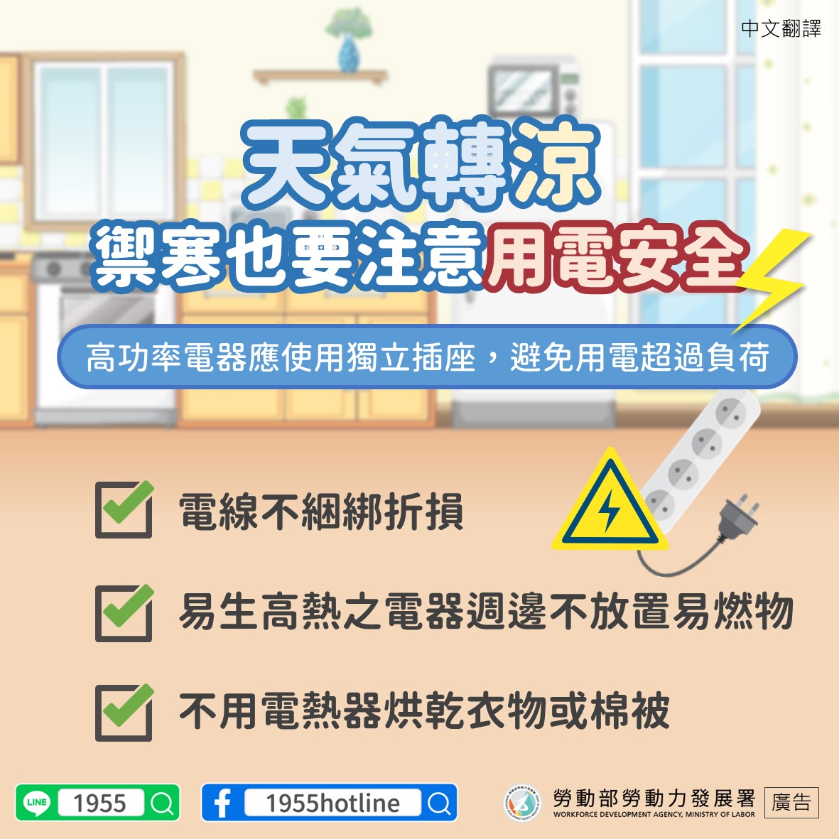 LINE@移點通-天氣轉涼 禦寒也要注意用電安全-多國語版本