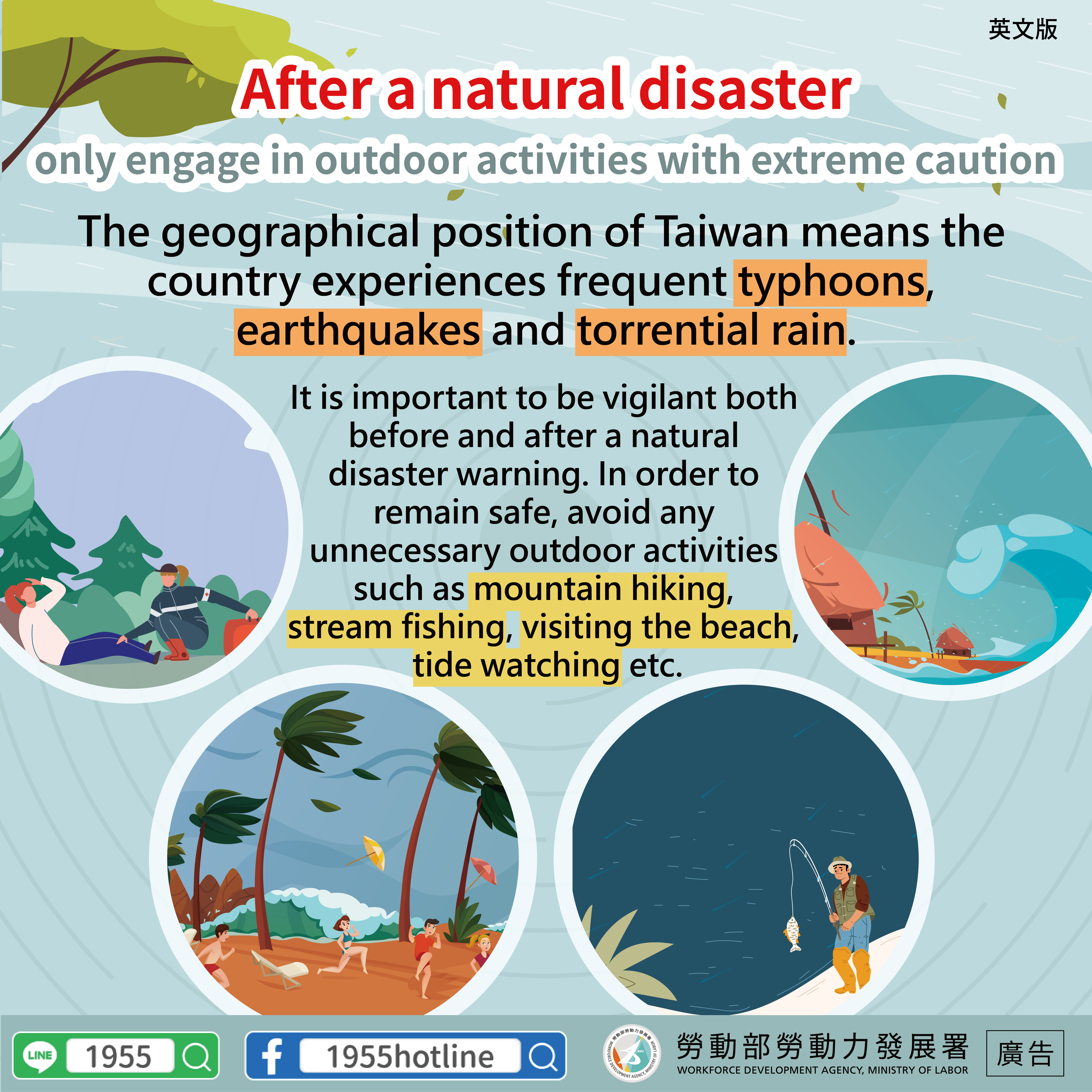 LINE@移點通-天災前後應注意戶外活動安全【大雨震後的戶外活動注意安全】-多國語言版