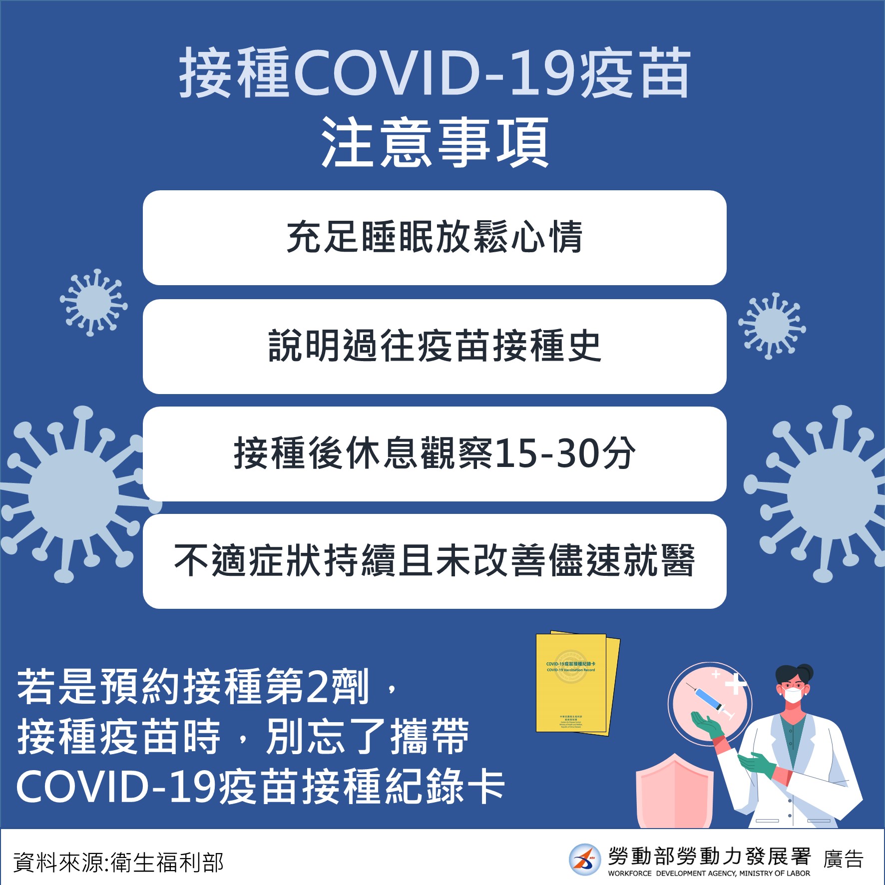 若是預約接種第2劑,接種疫苗時,別忘了攜帶COVID-19疫苗接種紀錄卡