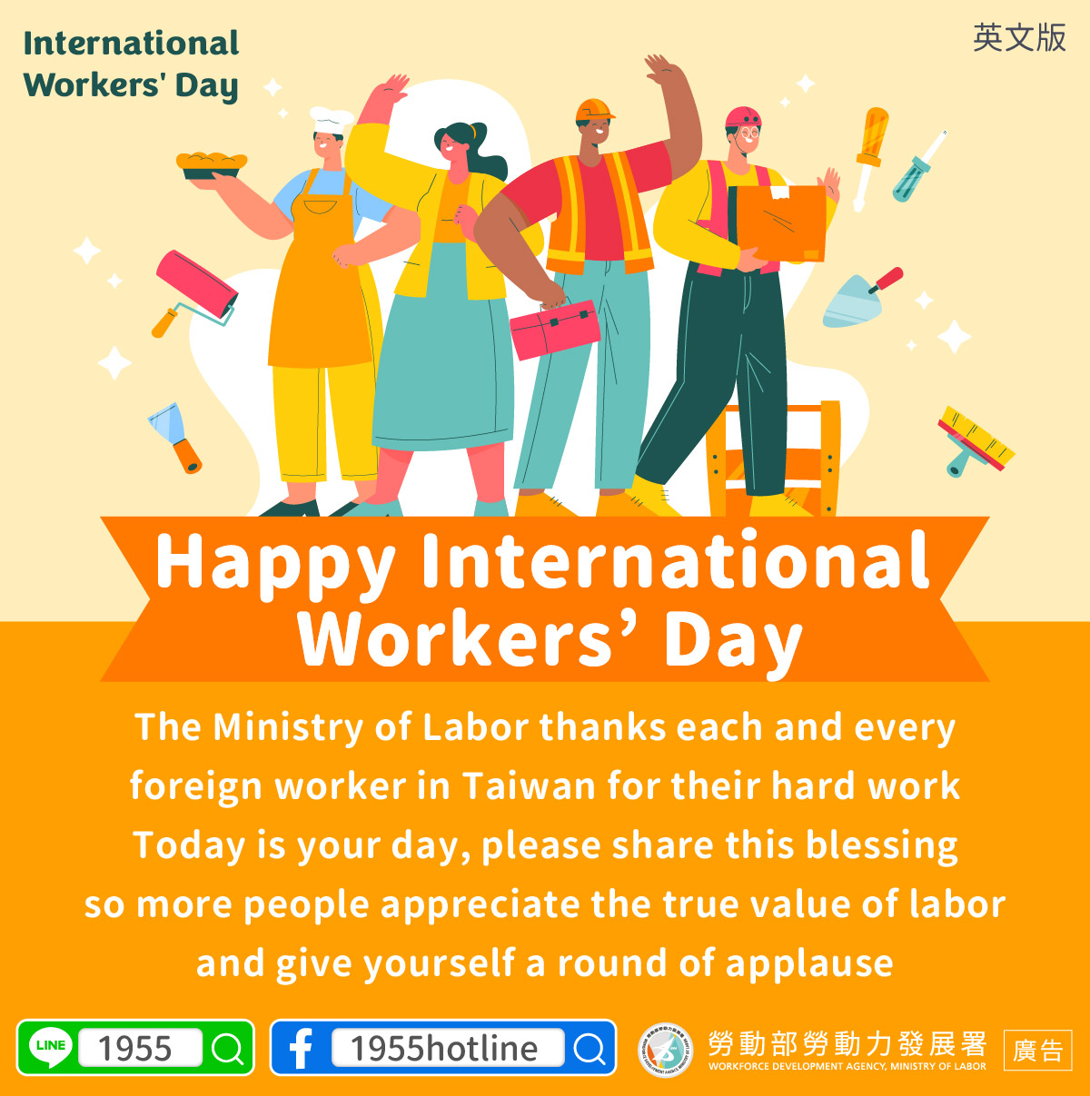 The Ministry of Labor thanks each and every foreign worker in Taiwan for their hard work