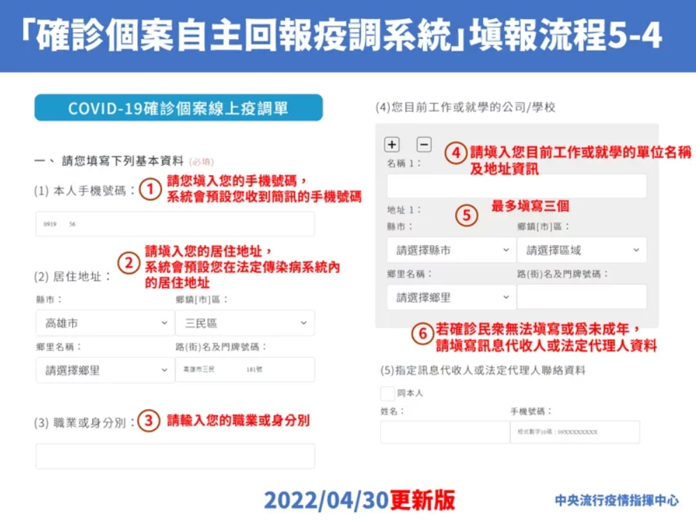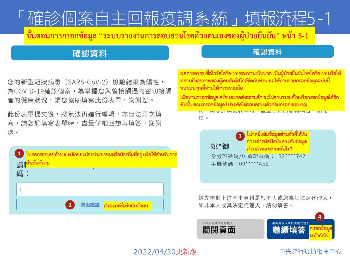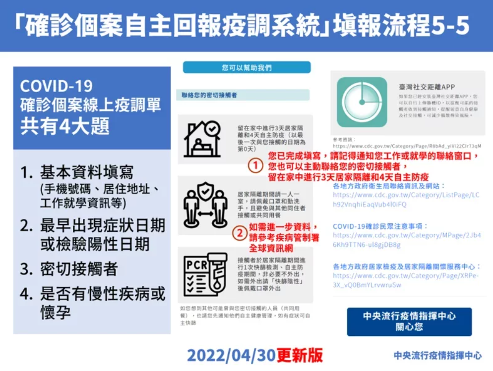 (多國語版)「確診個案自主回報疫調系統」填報流程