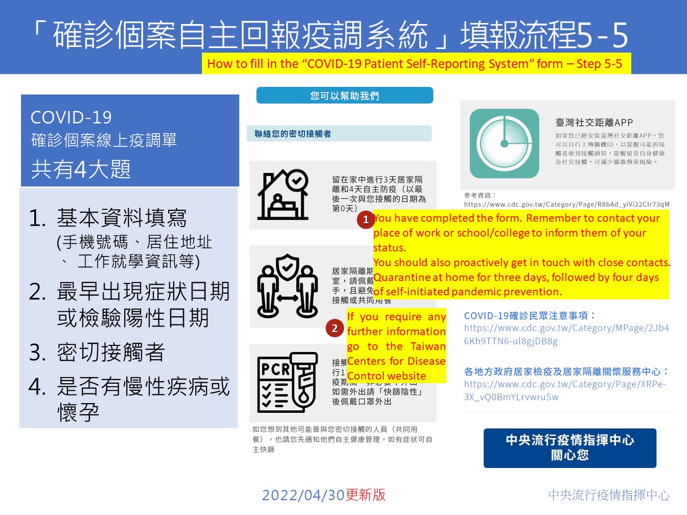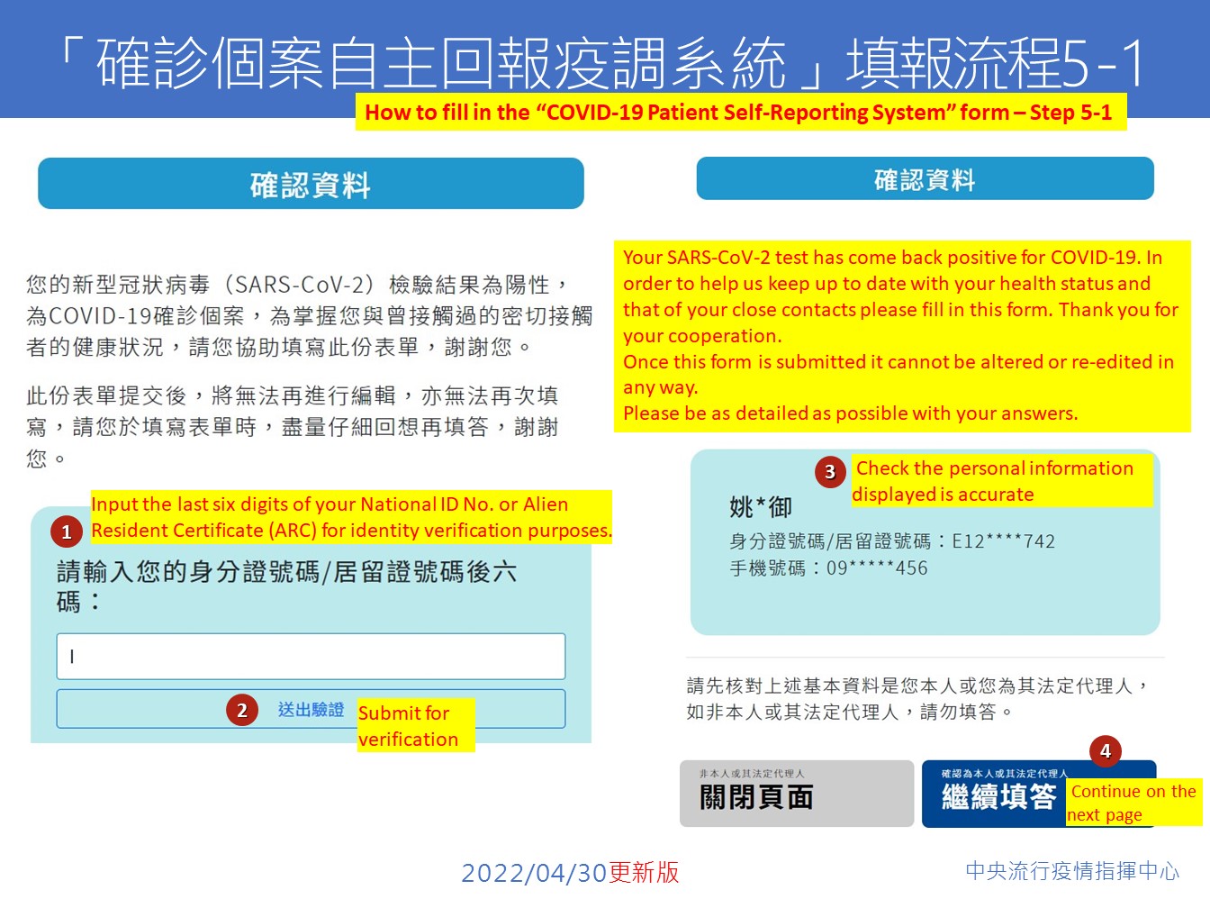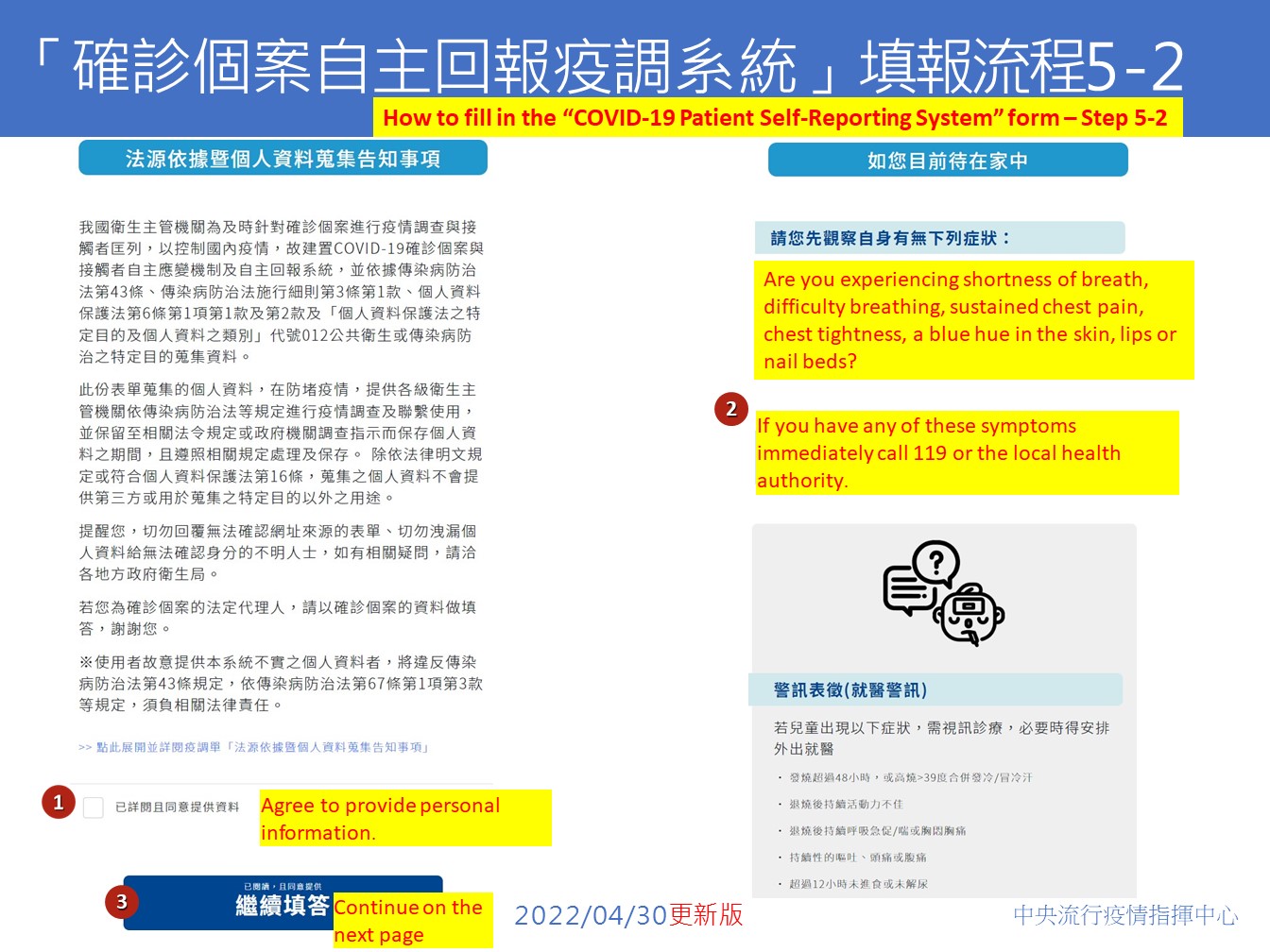 (多國語版)「確診個案自主回報疫調系統」填報流程