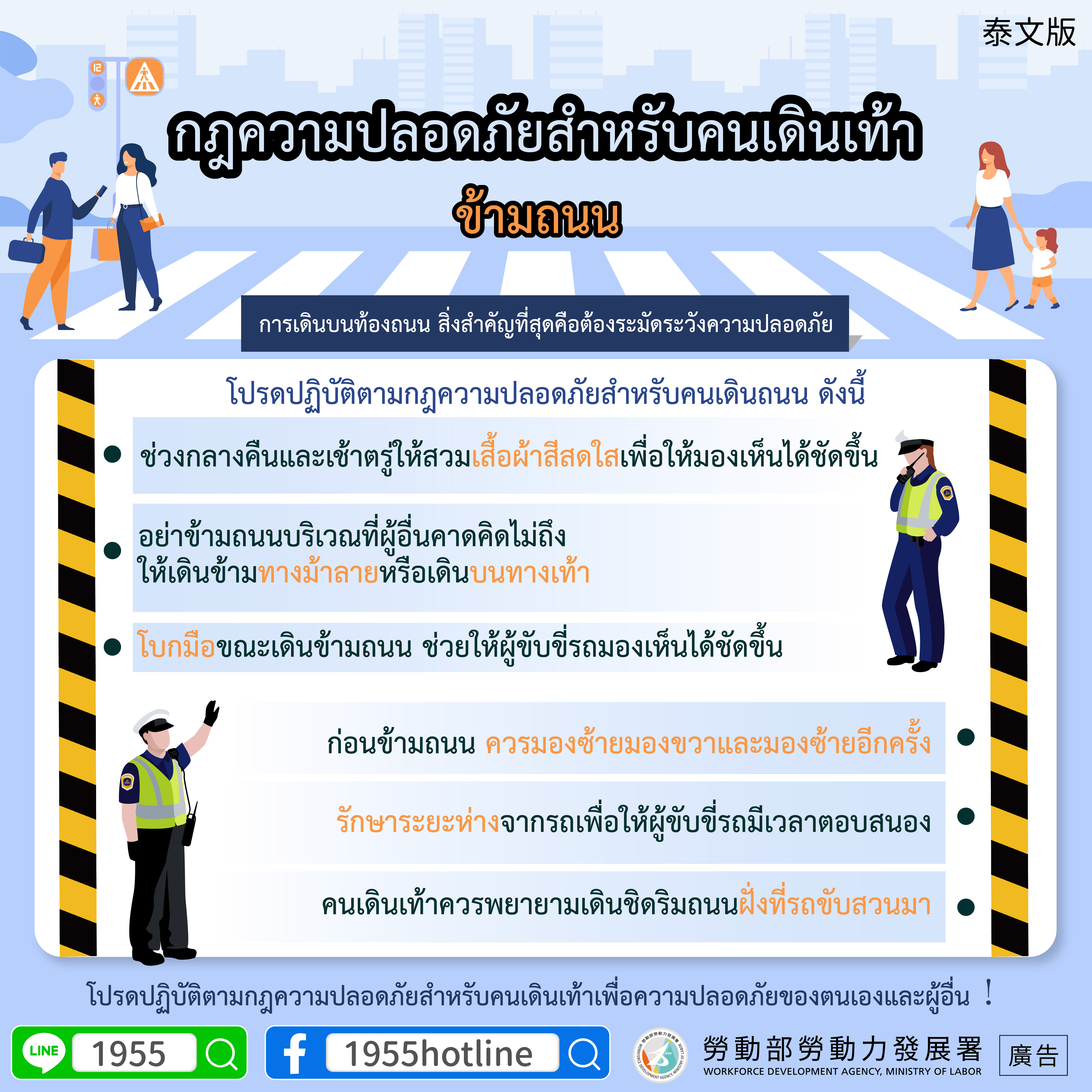 โปรดปฏิบัติตามกฎความปลอดภัยสำหรับคนเดินถนน ดังนี้