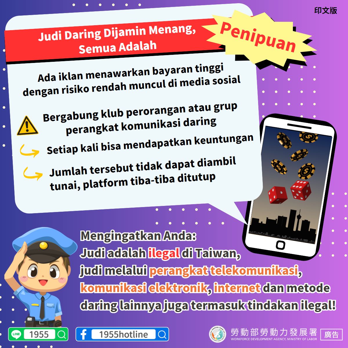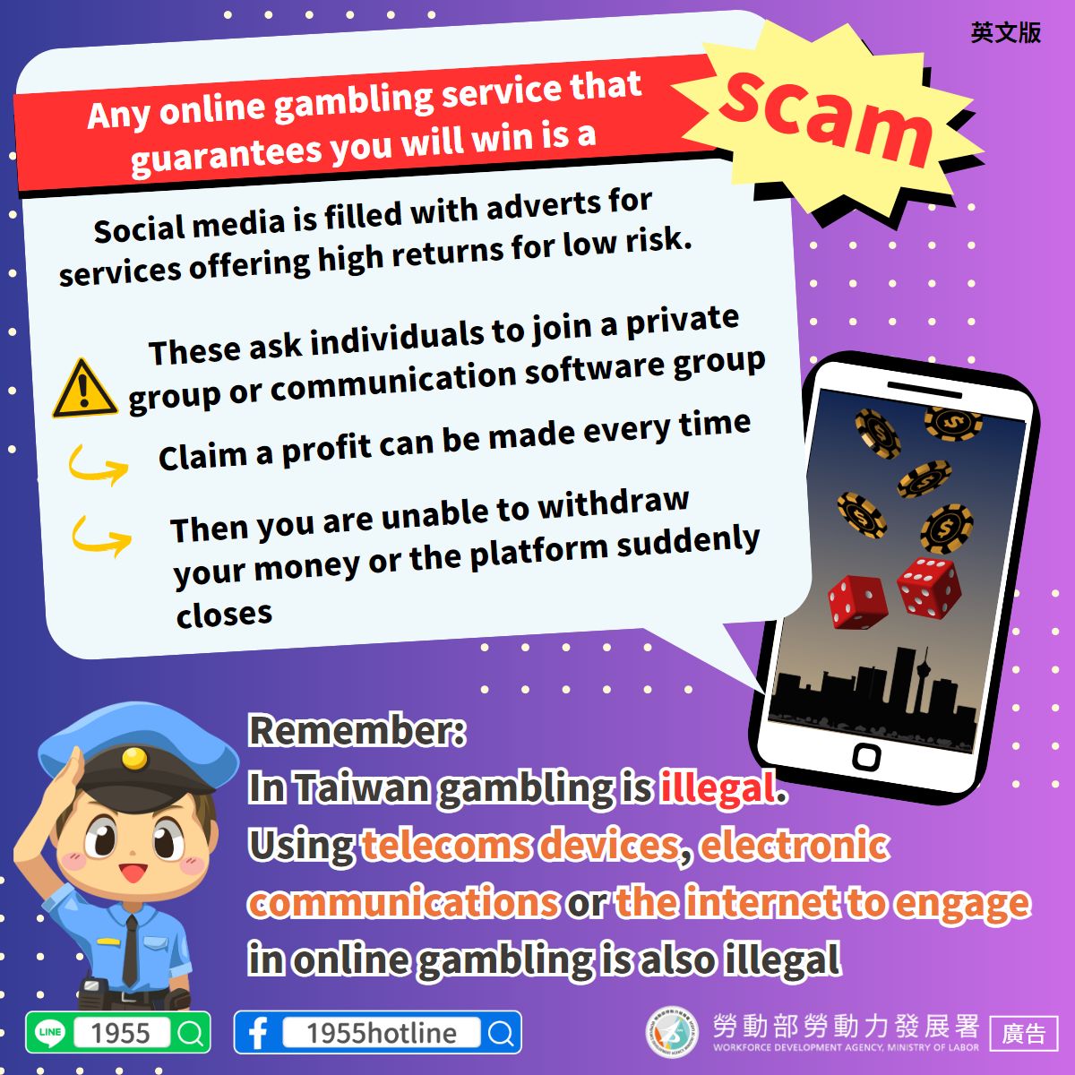 Judi adalah ilegal di Taiwan, judi melalui perangkat telekomunikasi,