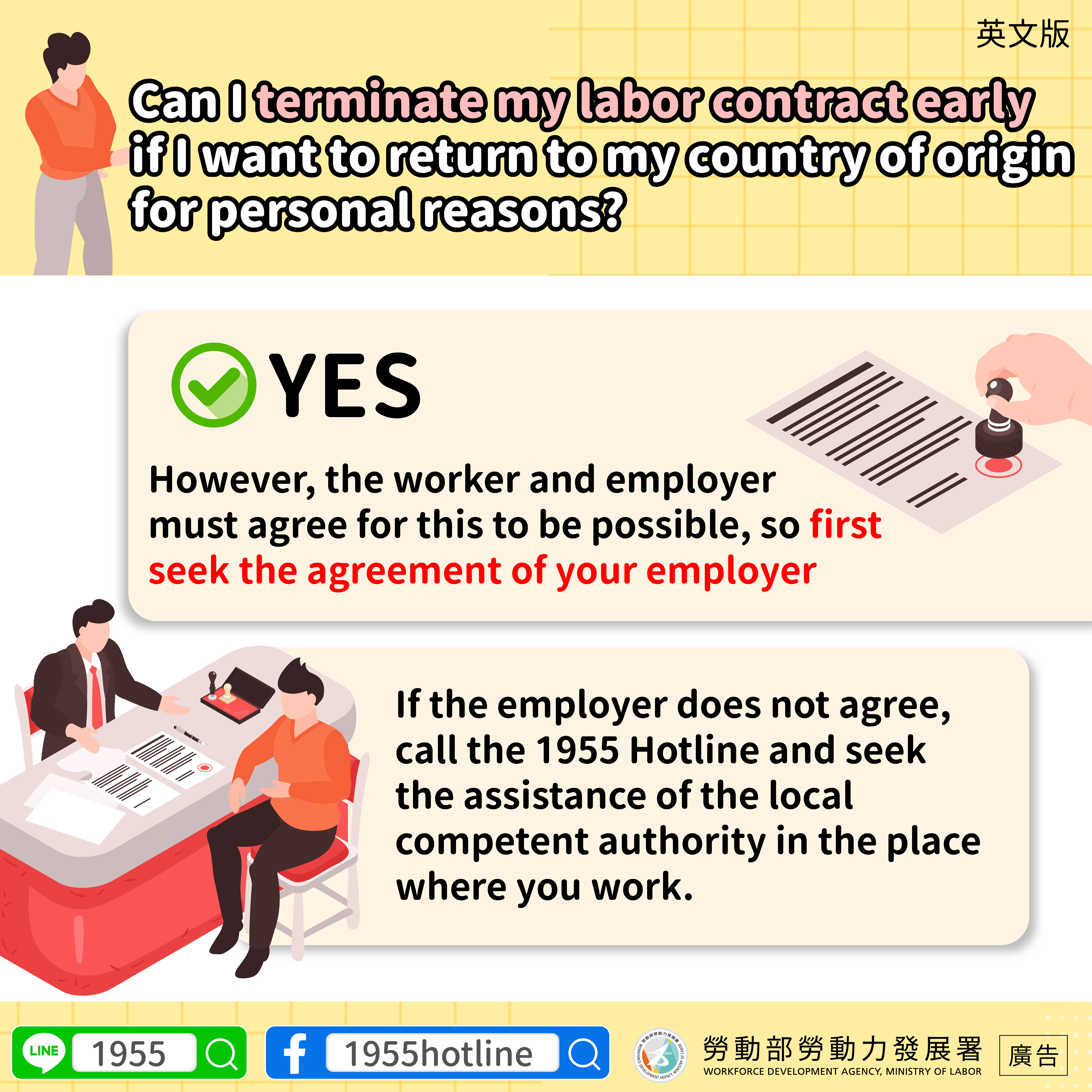 ▍Can I terminate my labor contract early if I want to return to my country of origin for personal reasons?