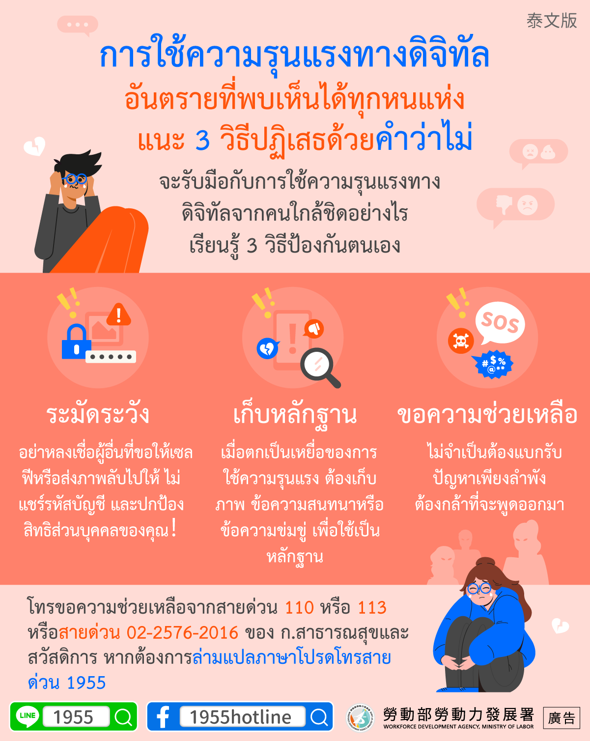 •ขอความช่วยเหลือ:ไม่จำเป็นต้องแบกรับปัญหาเพียงลำพังต้องกล้าที่จะพูดออกมา
