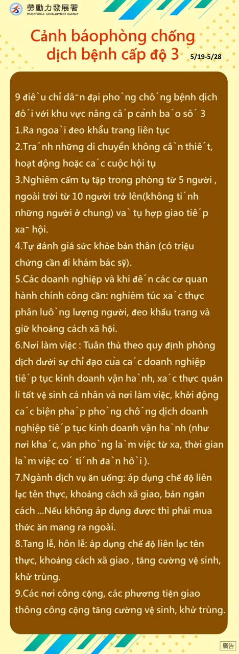 第三級警戒區域9大防疫指引