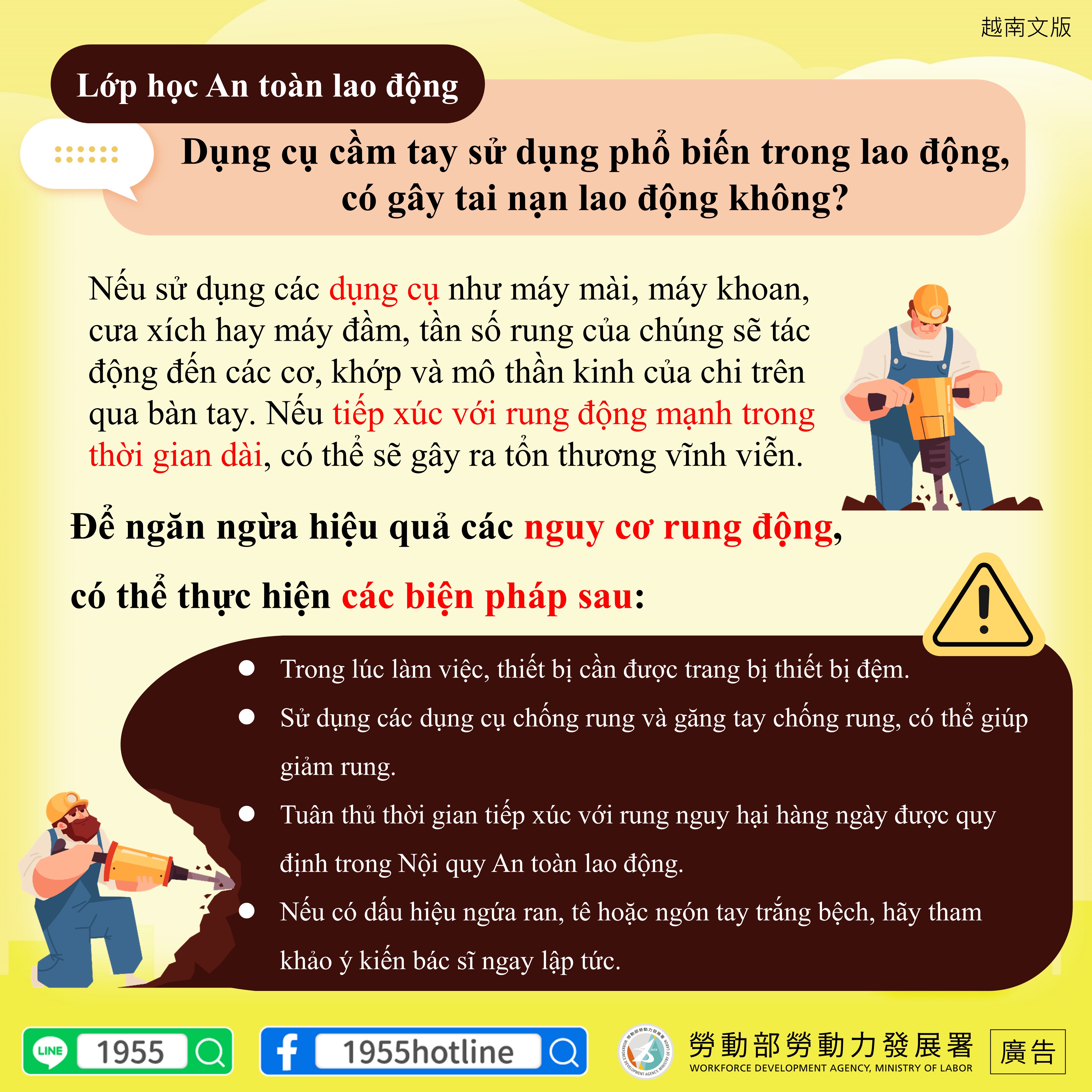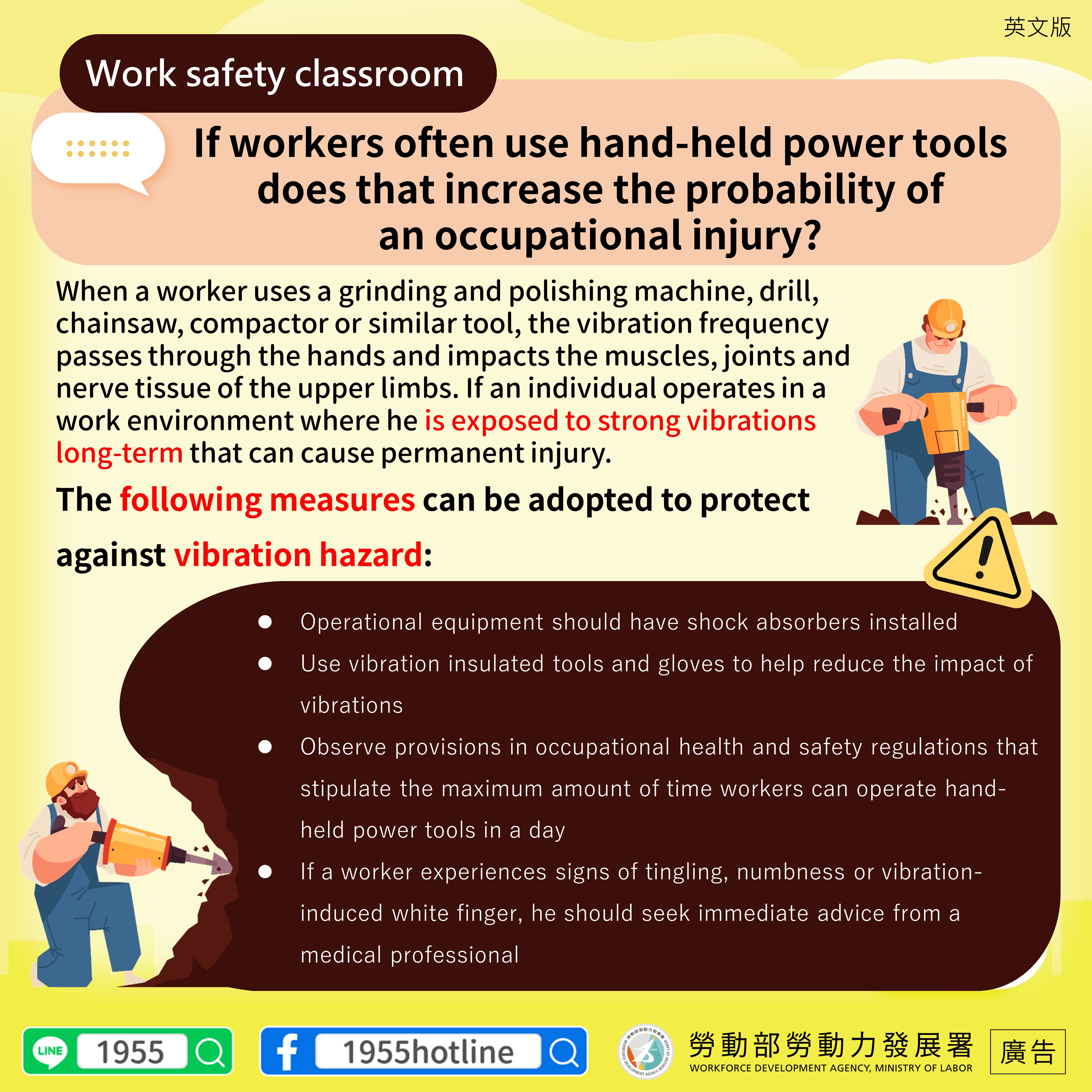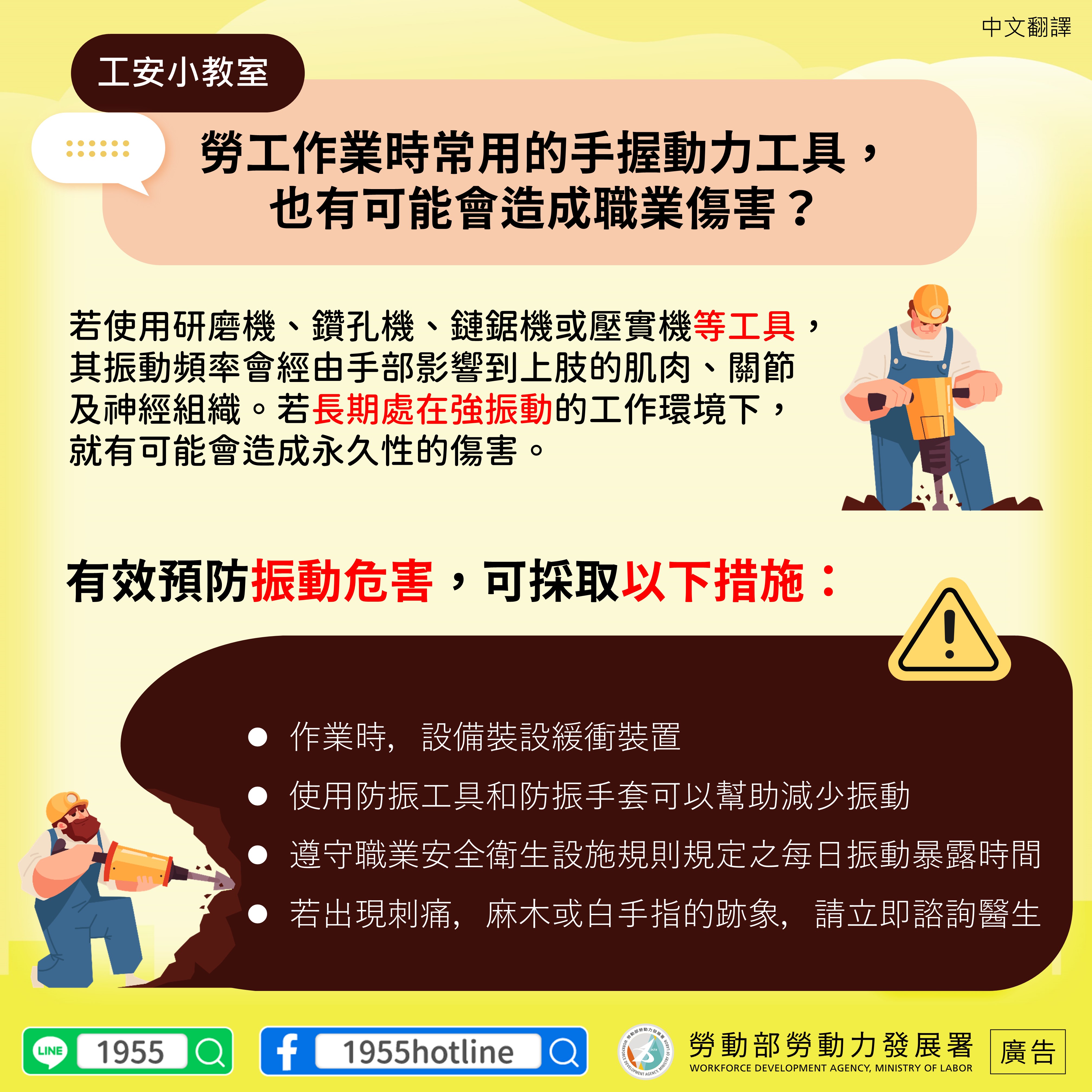 LINE@移點通-勞工作業時常用的手握動力工具,也有可能會造成職業傷害?【振動危害】-多國語言版