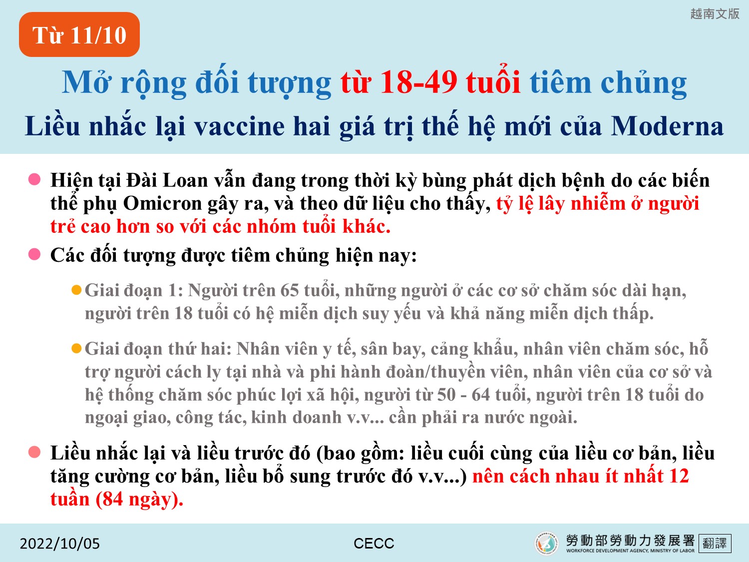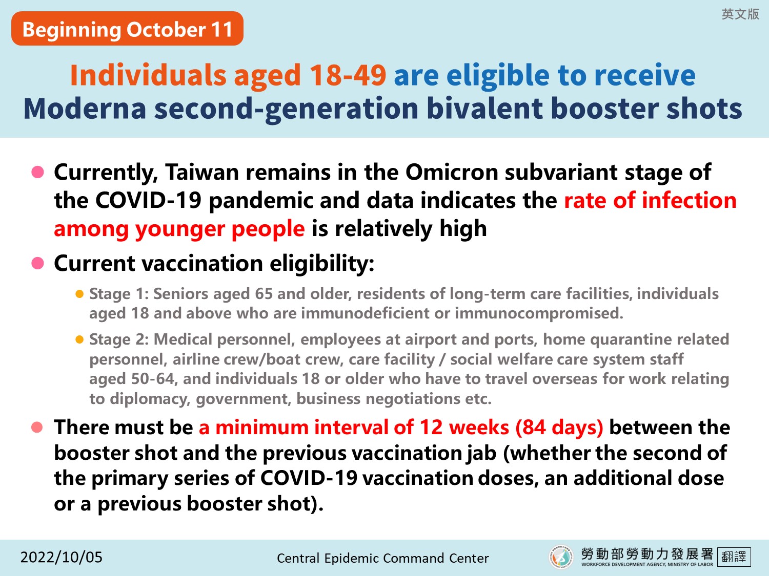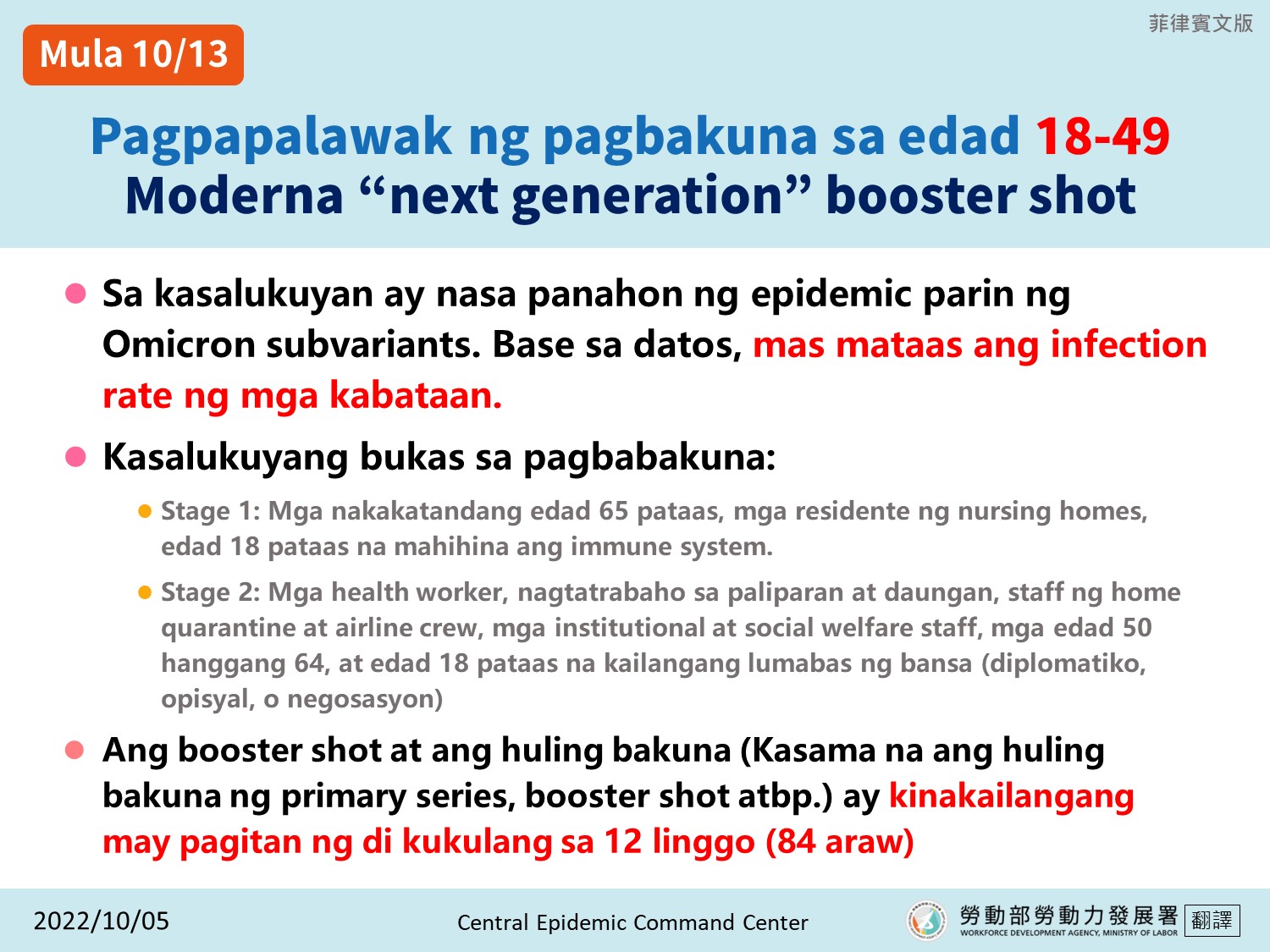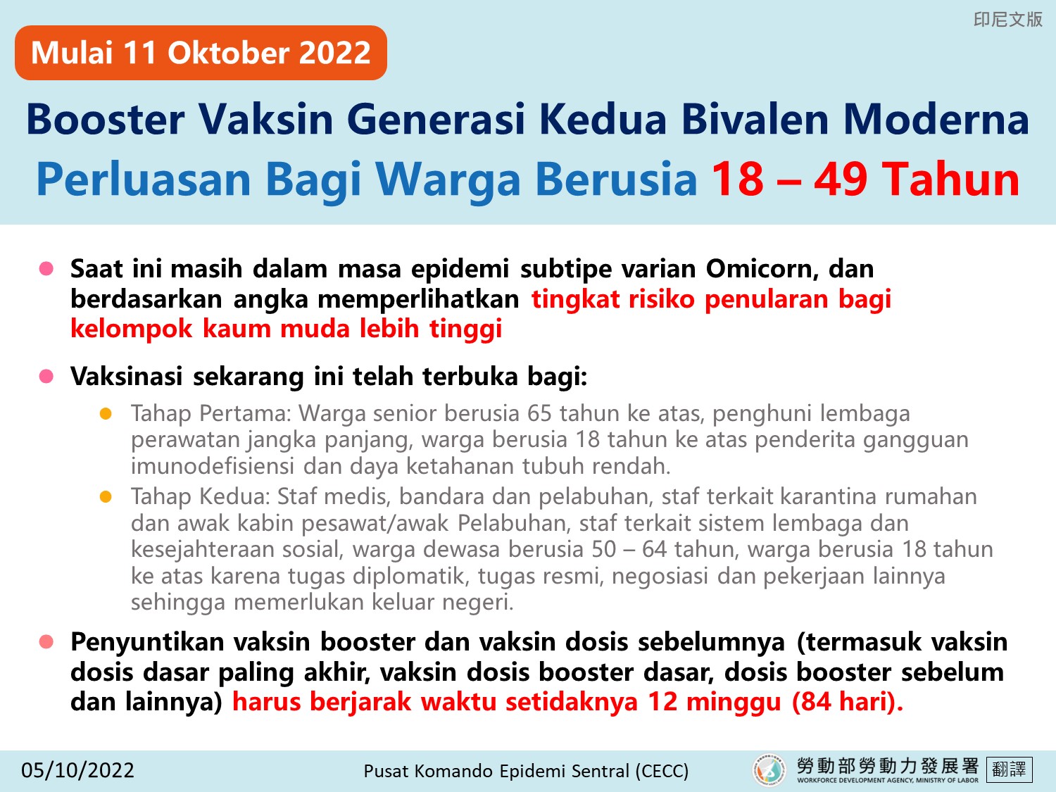 (中央流行疫情指揮中心)1011起擴大納入18-49歲民眾接種默德納次世代雙價疫苗追加劑-多國語版本