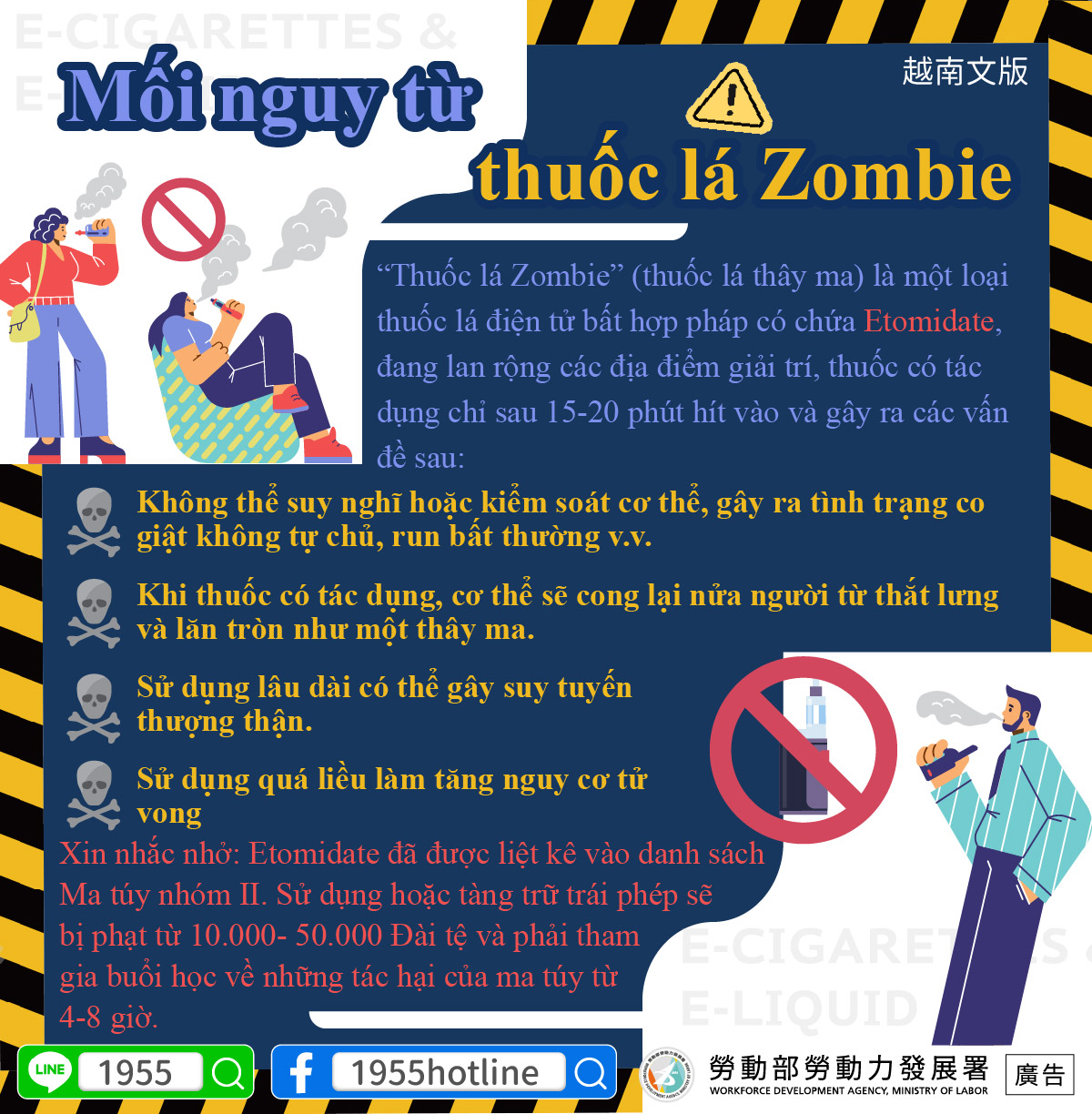 “Thuốc lá Zombie” (thuốc lá thây ma) là một loại thuốc lá điện tử bất hợp pháp có chứa Etomidate, đang lan rộng các địa điểm giải trí, thuốc có tác dụng chỉ sau 15-20 phút hít vào và gây ra các vấn đề sau: