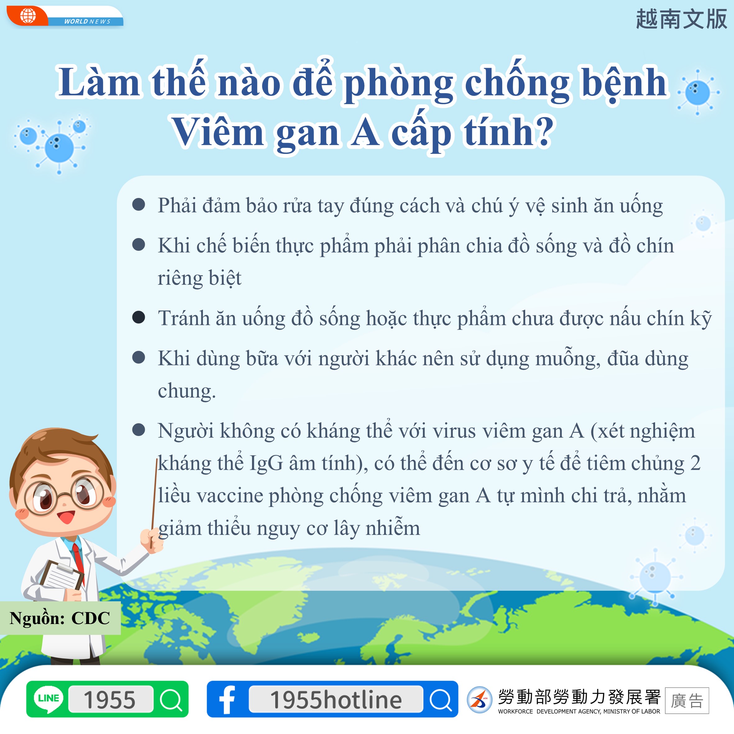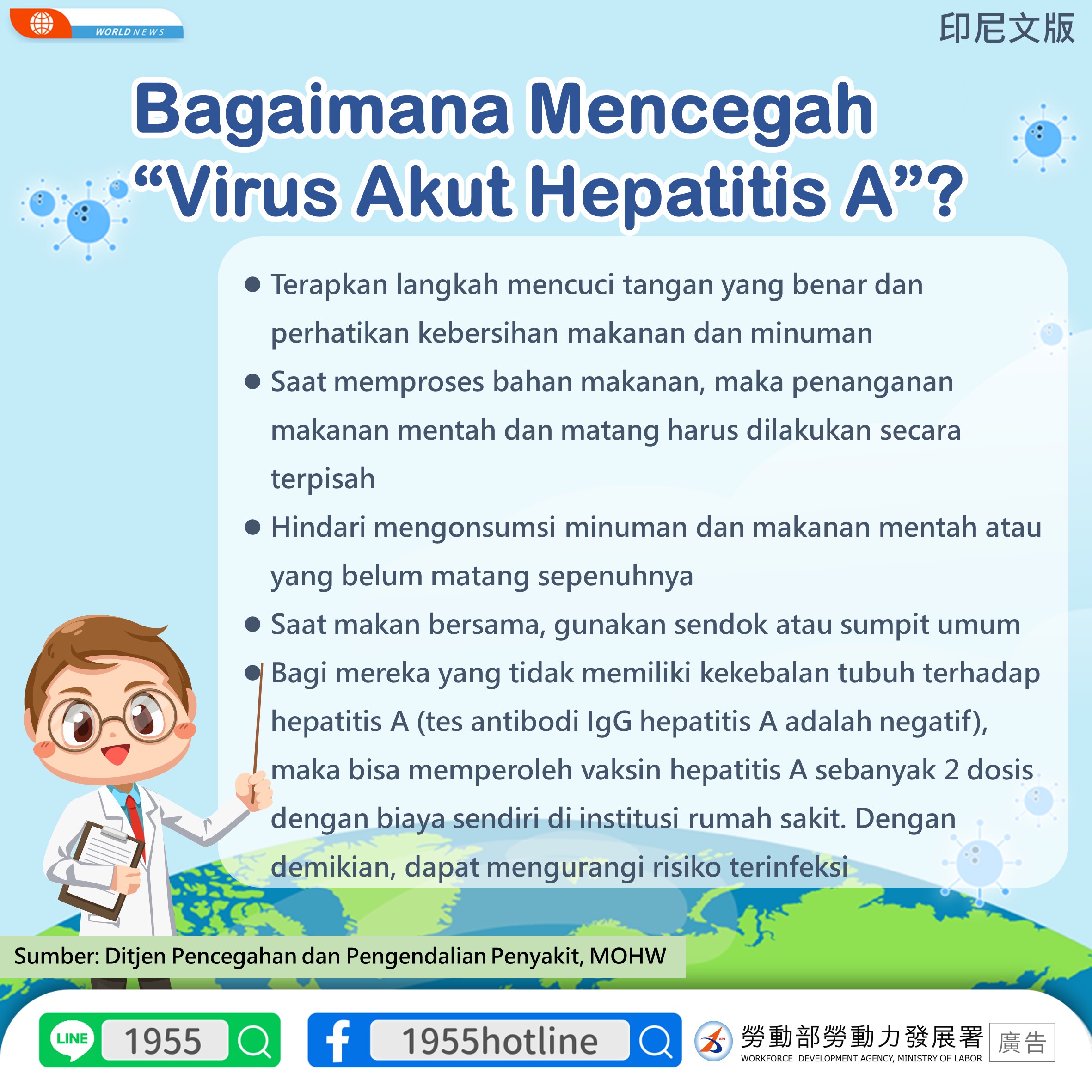 *Bagi mereka yang tidak memiliki kekebalan tubuh terhadap hepatitis A (tes antibodi IgG hepatitis A adalah negatif), maka bisa memperoleh vaksin hepatitis A sebanyak 2 dosis dengan biaya sendiri di institusi rumah sakit. Dengan demikian, dapat mengurangi risiko terinfeksi