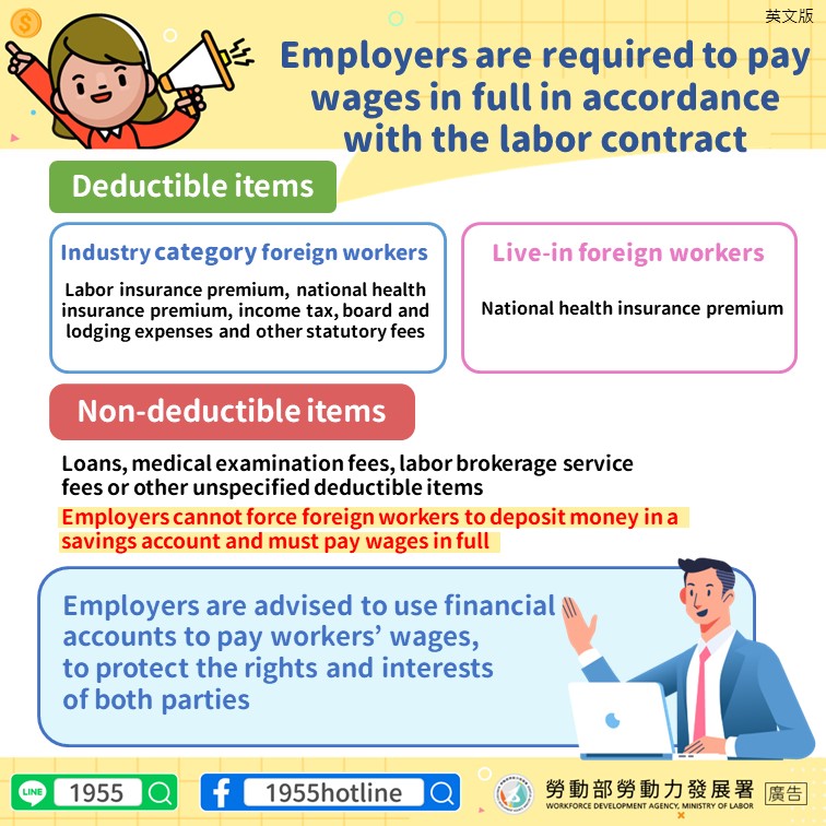 Employers cannot force foreign workers to deposit money in a savings account and must pay wages in full