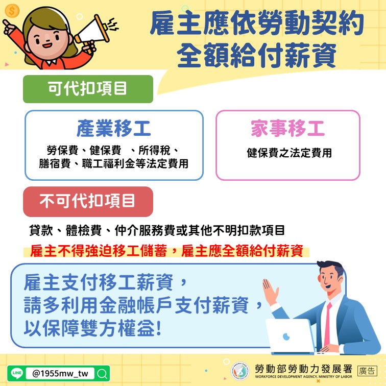 雇主支付移工薪資, 請多利用金融帳戶支付薪資, 以保障雙方權益!