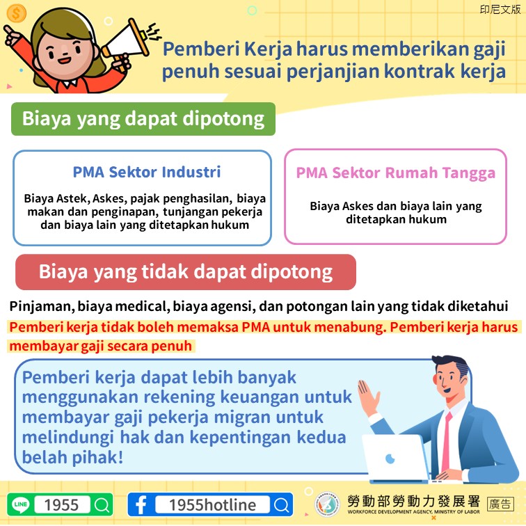 產業移工-勞保費、健保費 、所得稅、 膳宿費、職工福利金等法定費用
