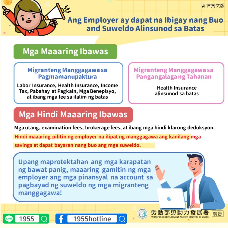 雇主不得強迫移工儲蓄,雇主應全額給付薪資