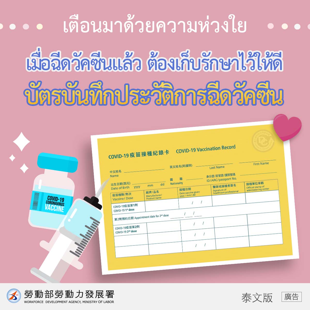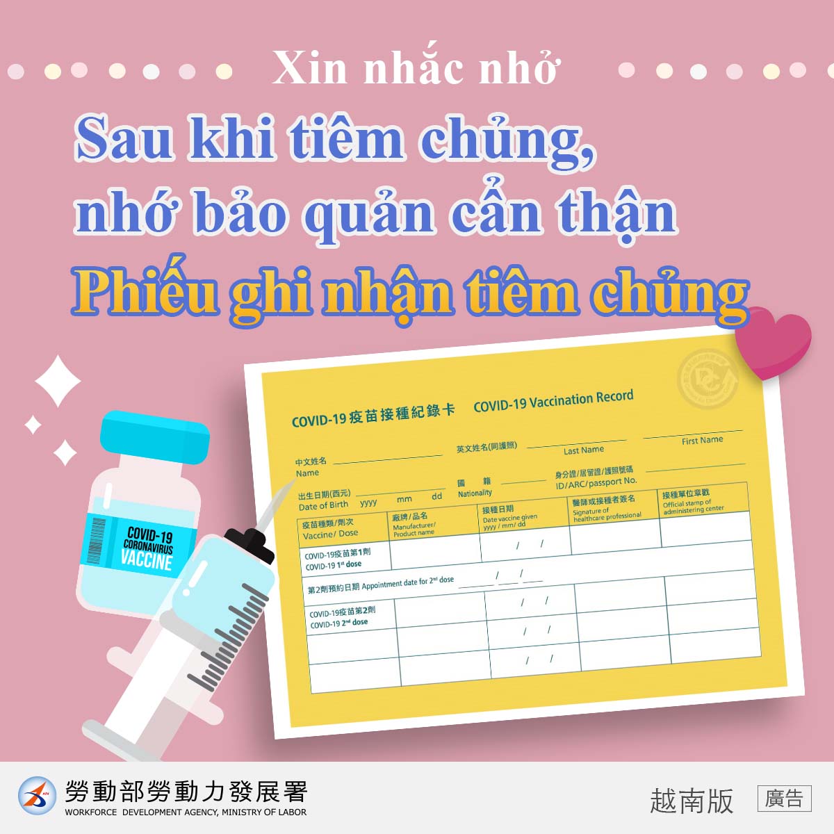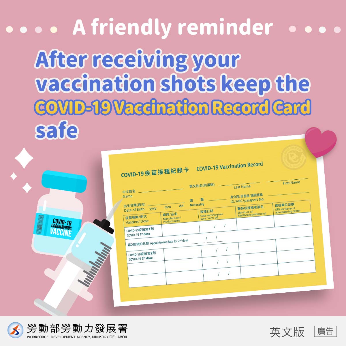 LINE@移點通 -防疫生活【妥善保管疫苗接種紀錄卡】-多國語版
