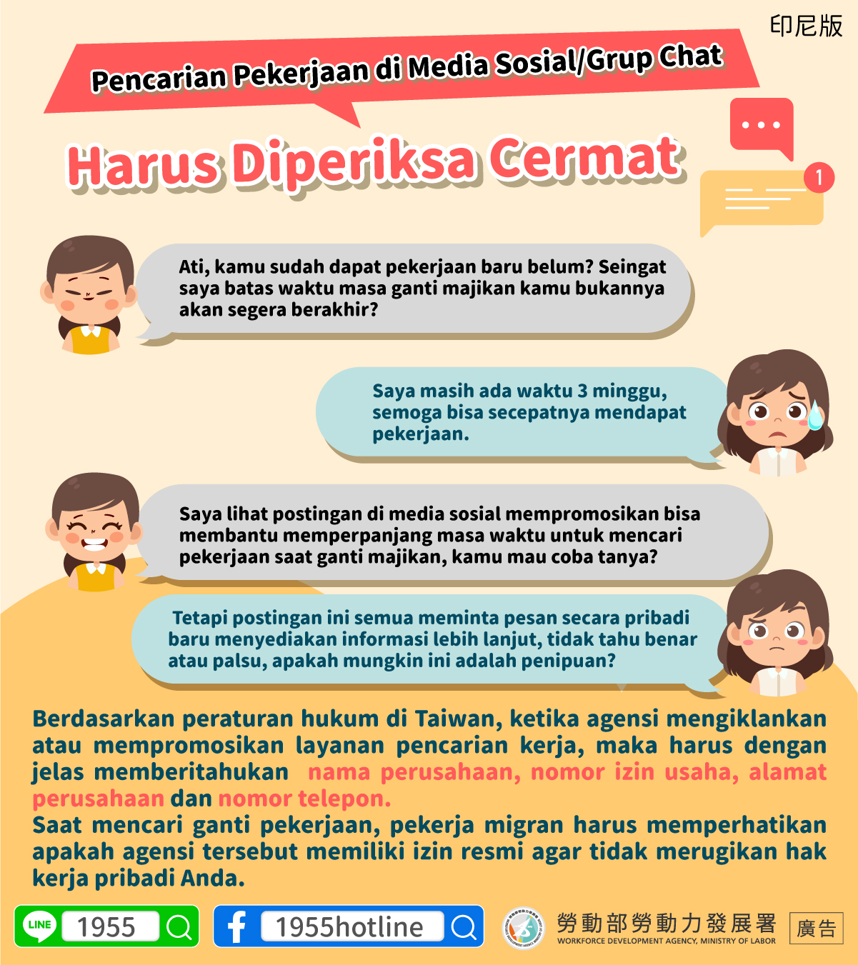 LINE@移點通-招工社群/社團資訊應當心求證【小心不實就業招募廣告】-多國語言版