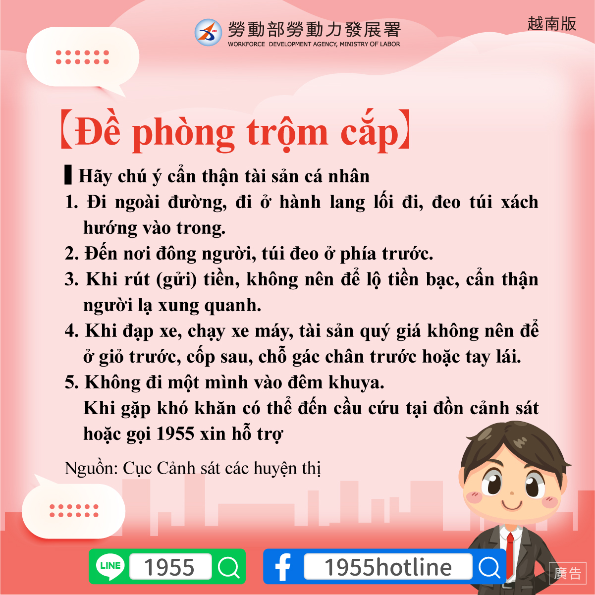 Jika menghadapi kesulitan, mohon meminta bantuan ke kantor polisi atau menghubungi Saluran Khusus 1955 untuk konsultasi