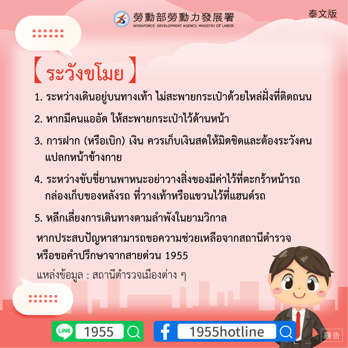 หากประสบปัญหาสามารถขอความช่วยเหลือจากสถานีตำรวจหรือขอคำปรึกษาจากสายด่วน 1955