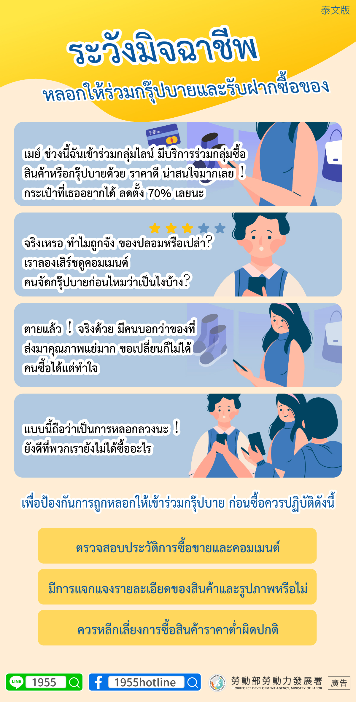 เพื่อป้องกันการถูกหลอกให้เข้าร่วมกรุ๊ปบาย ก่อนซื้อควรปฏิบัติดังน