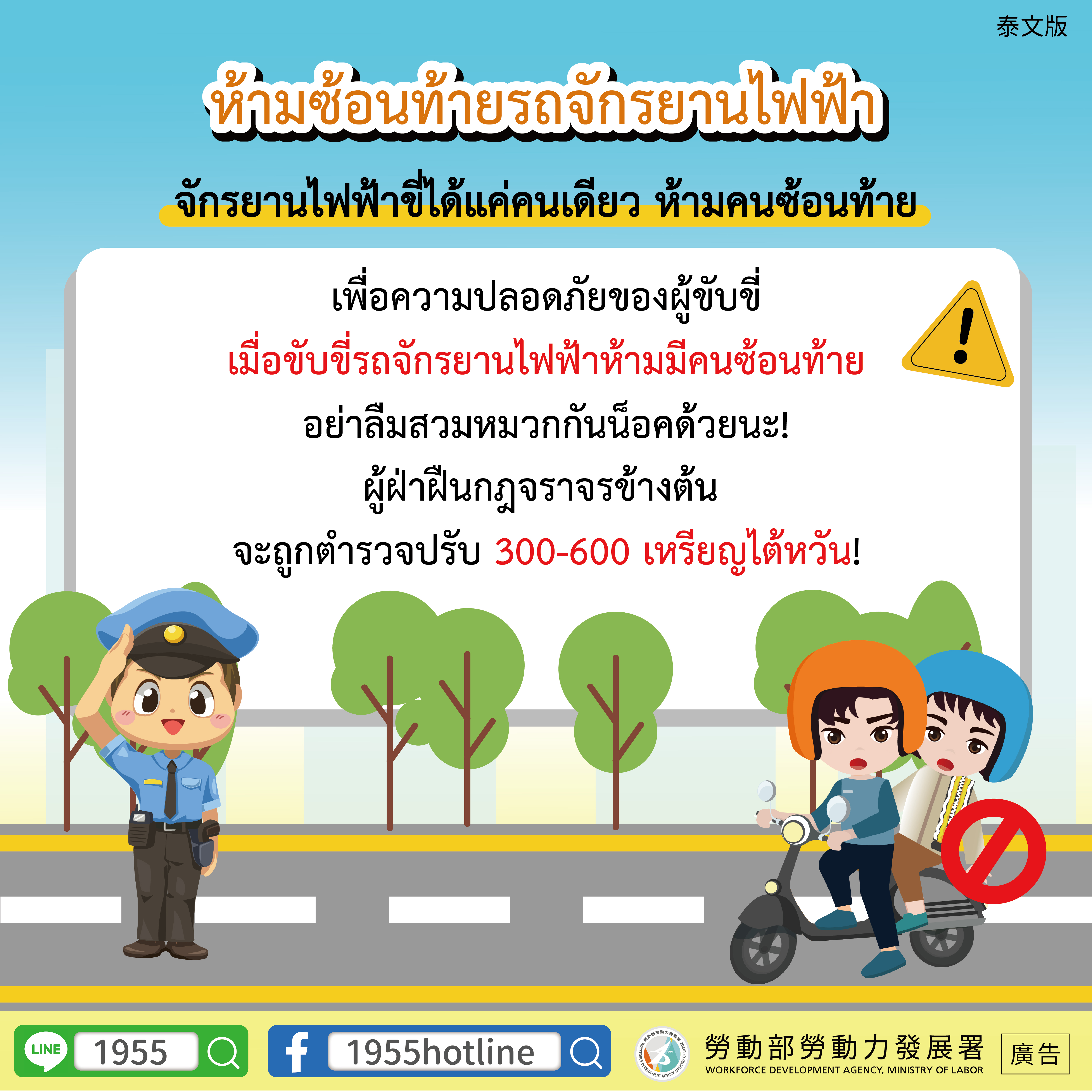 เพื่อความปลอดภัยของผูขับขี่ เมื่อขับขี่รถจักรยานไฟฟาหามมีคนซอนทาย อยาลืมสวมหมวกกันน็อคดวยนะ!