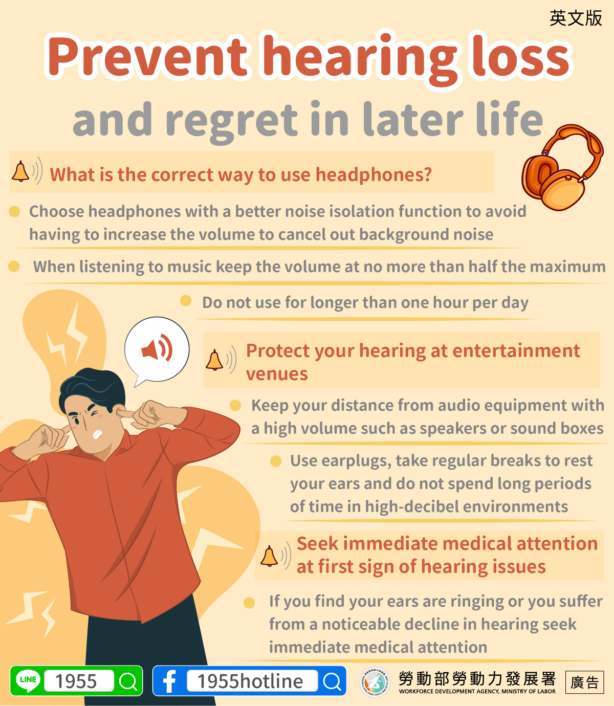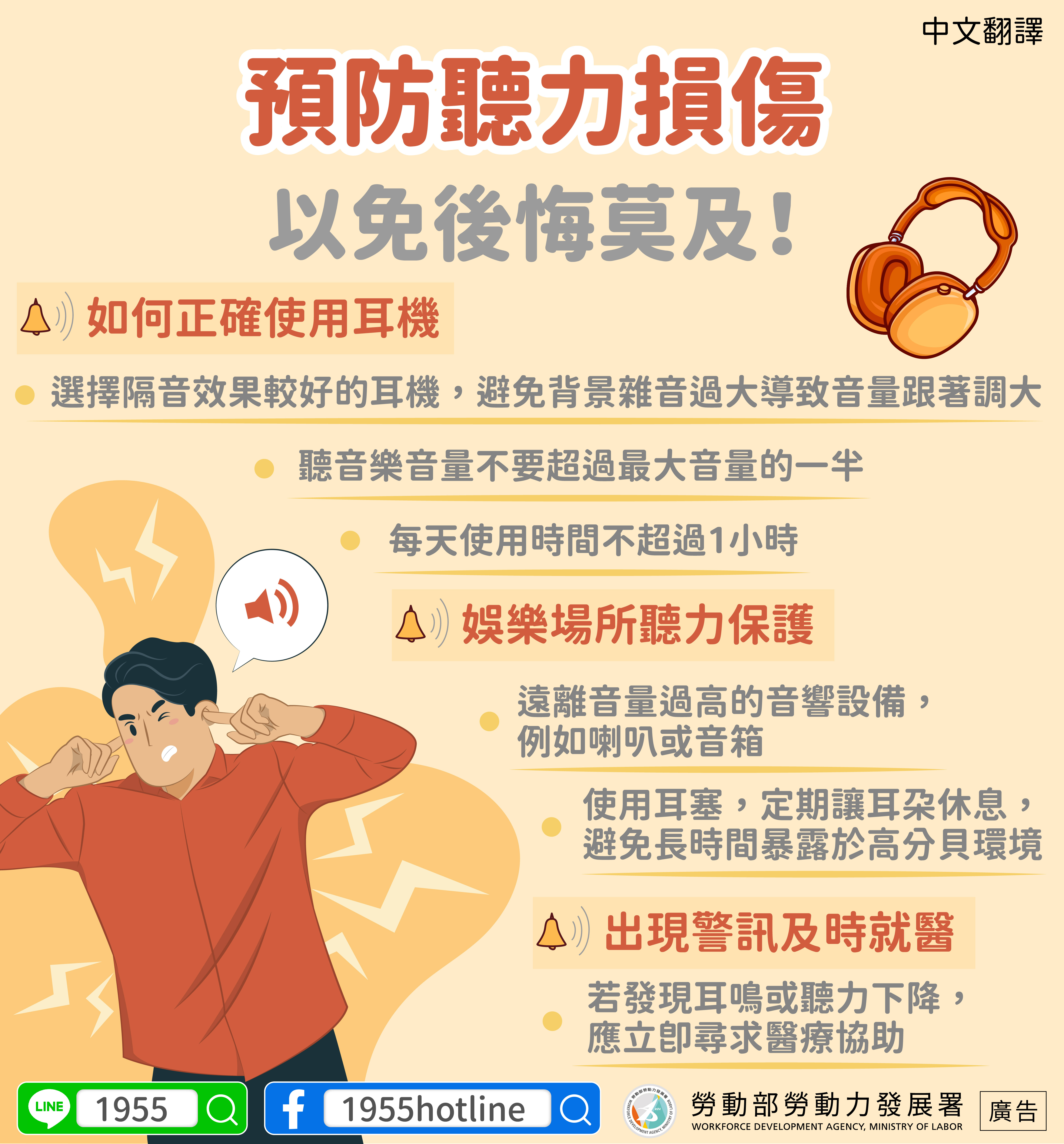 •使用耳塞,定期讓耳朵休息,避免長時間暴露於高分貝環境