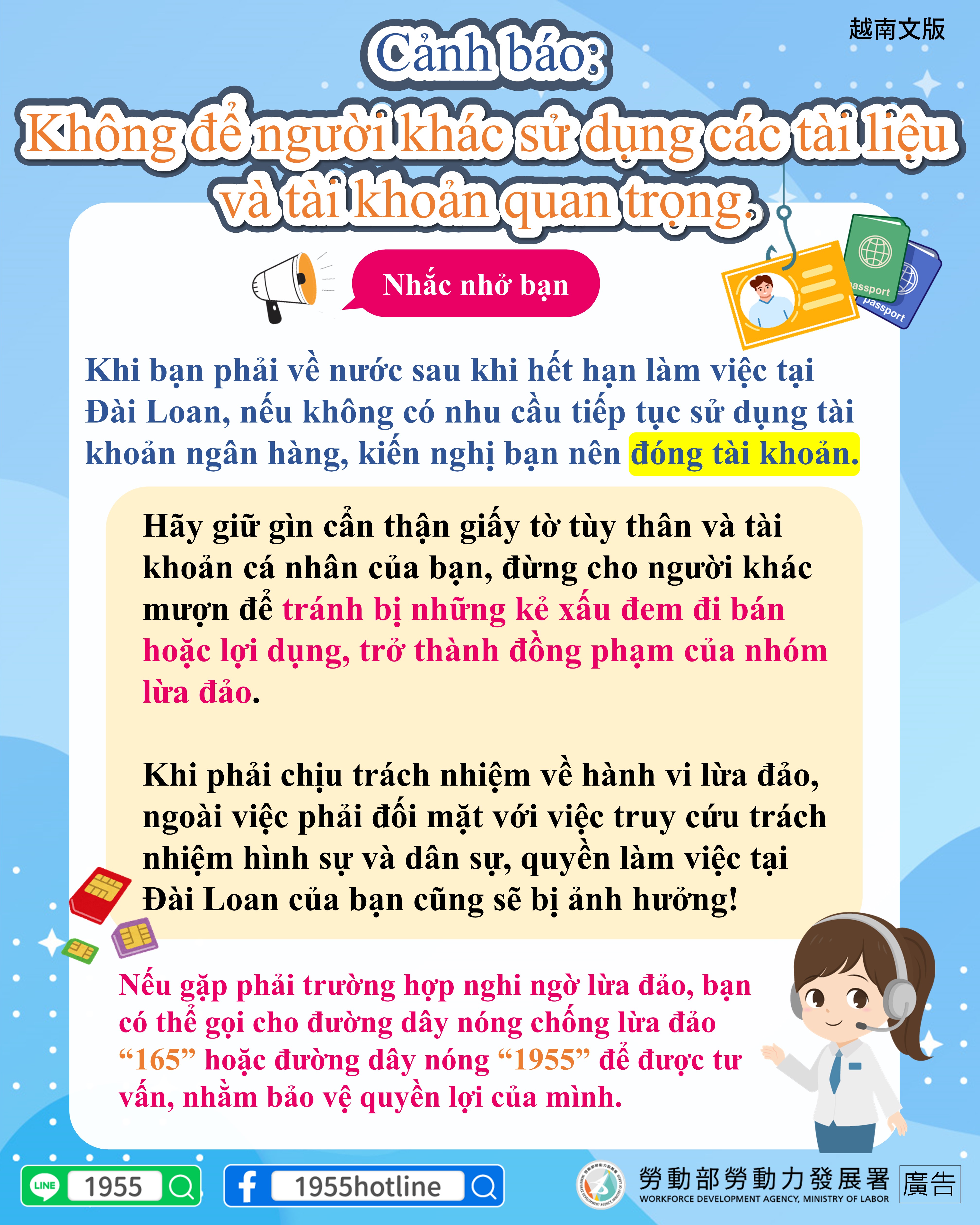 Khi phải chịu trách nhiệm về hành vi lừa đảo, ngoài việc phải đối mặt với việc truy cứu trách nhiệm hình sự và dân sự, quyền làm việc tại Đài Loan của bạn cũng sẽ bị ảnh hưởng!