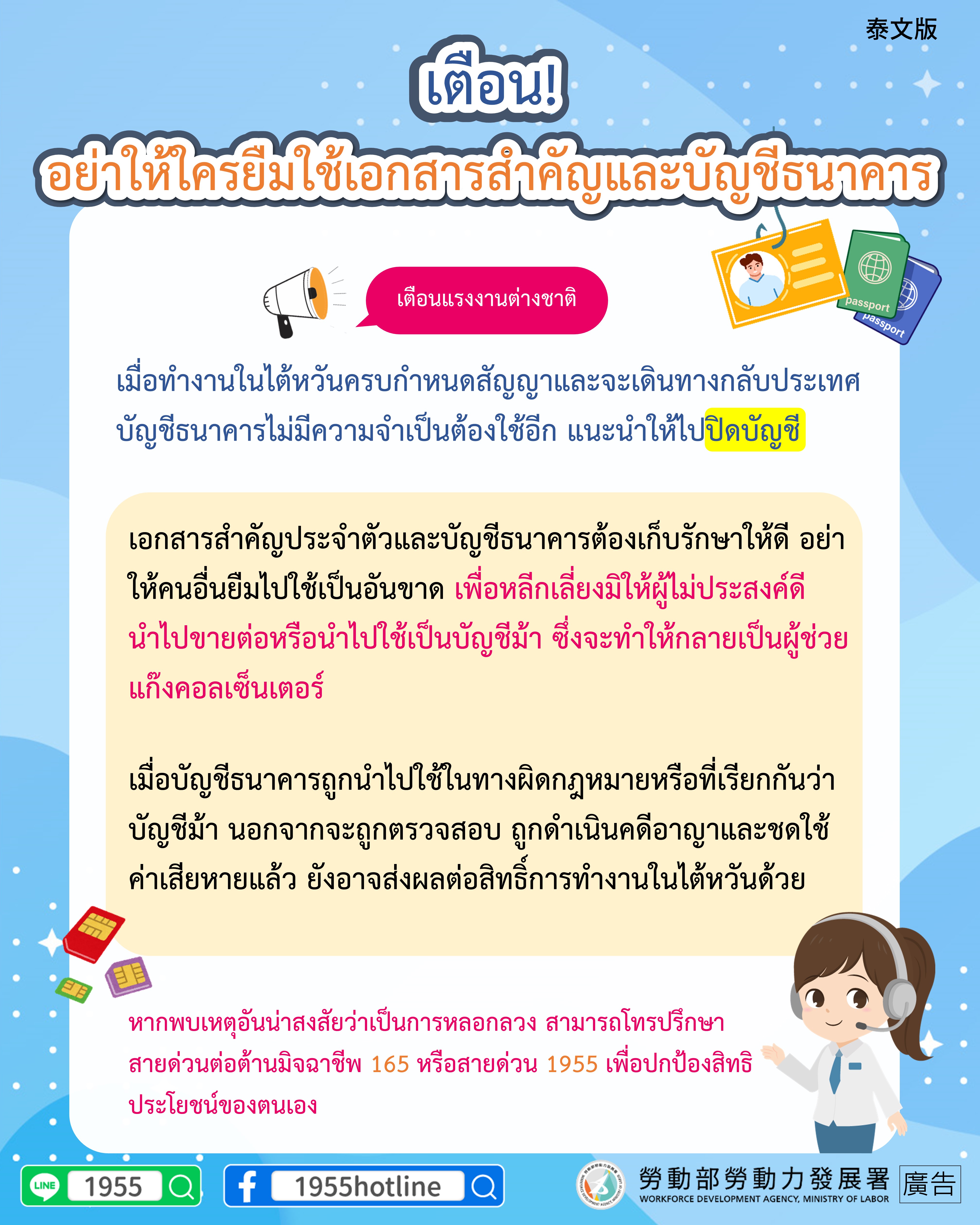 ▍เตือน! อย่าให้ใครยืมใช้เอกสารสำคัญและบัญชีธนาคาร