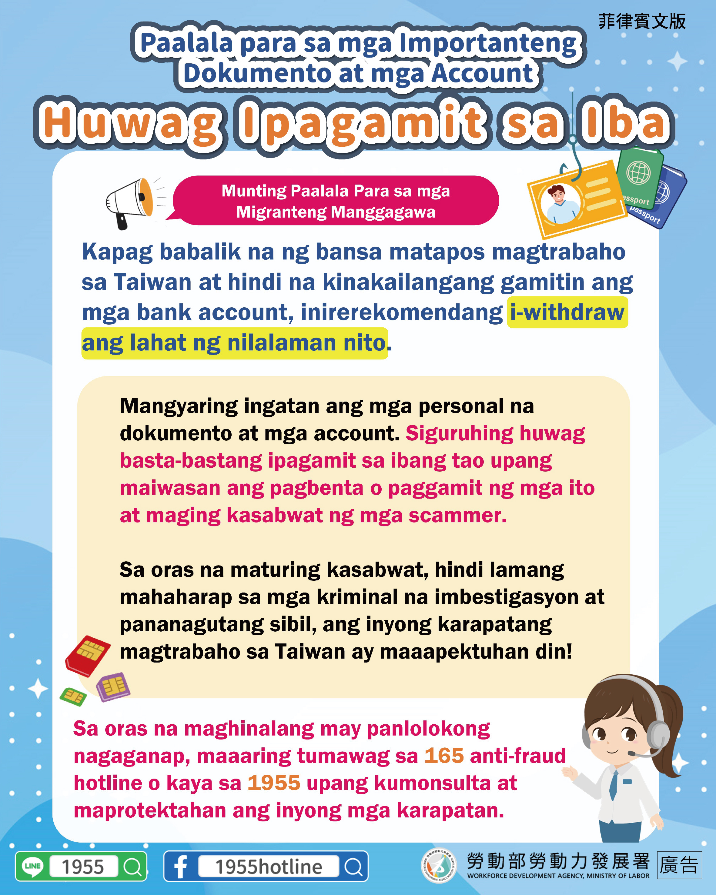 提醒重要證件、帳戶 勿提供他人使用-多國語言版