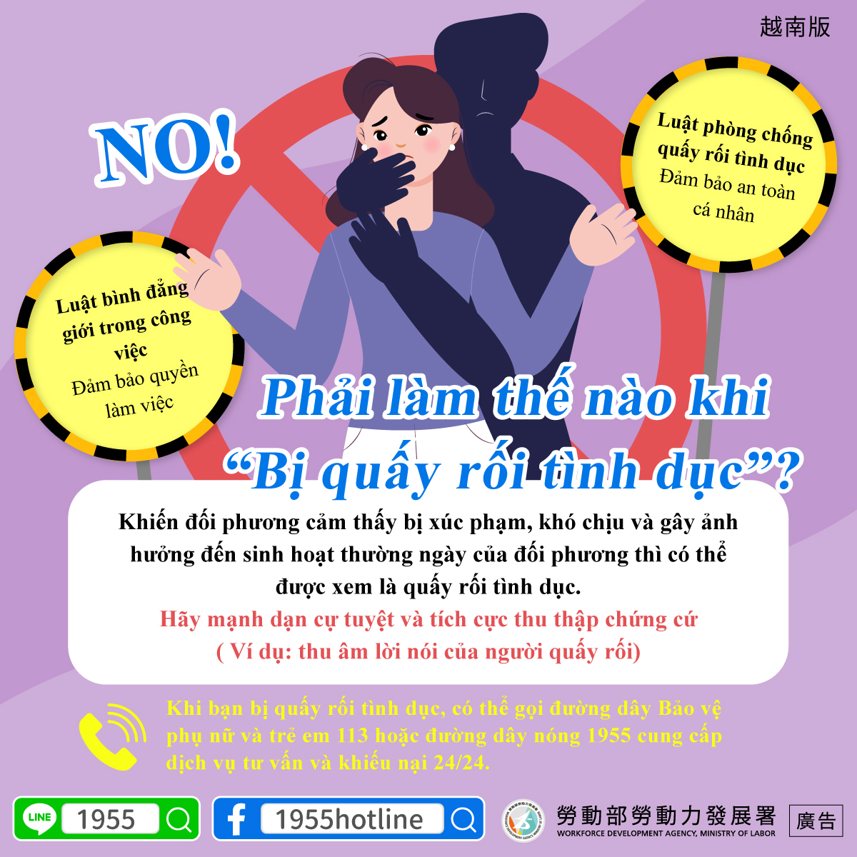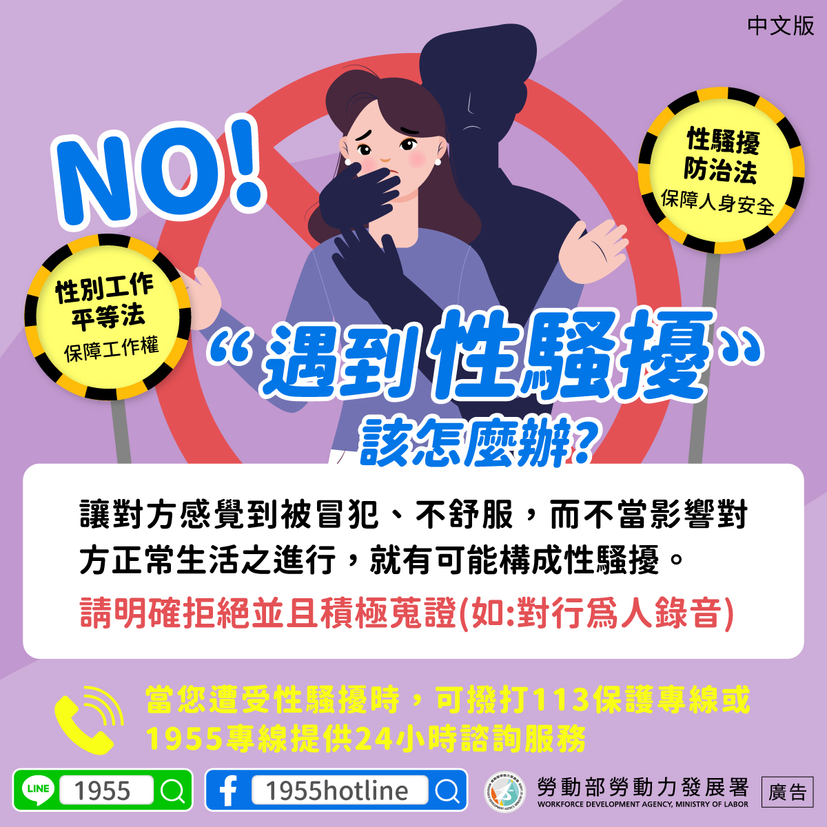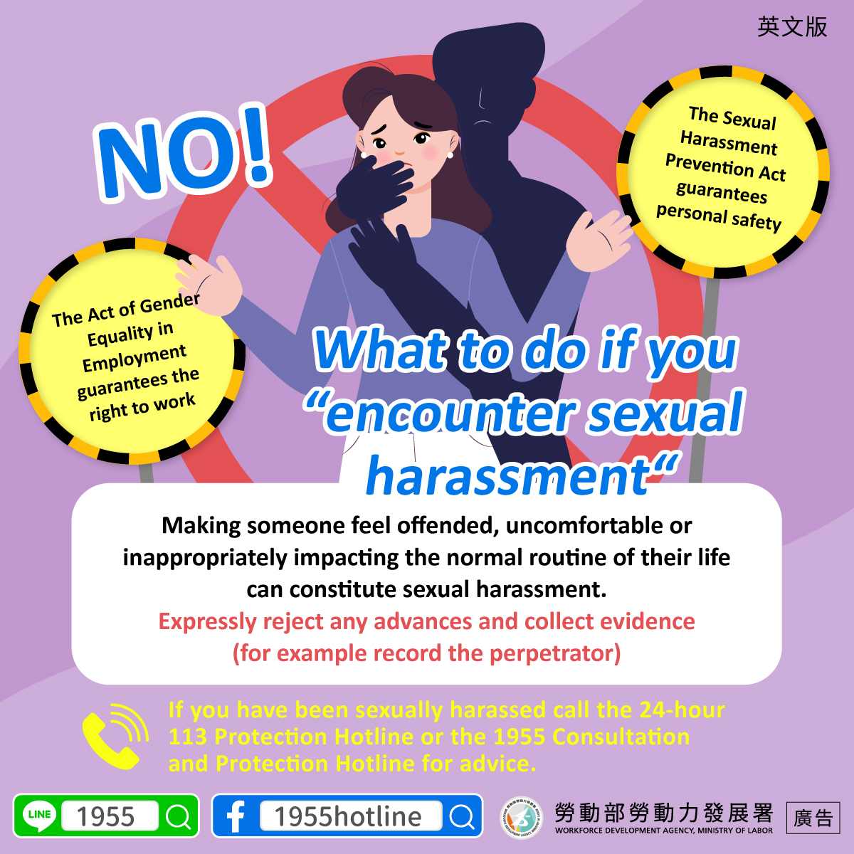 4.當您遭受性騷擾時,可撥打113保護專線或1955專線提供24小時諮詢服務