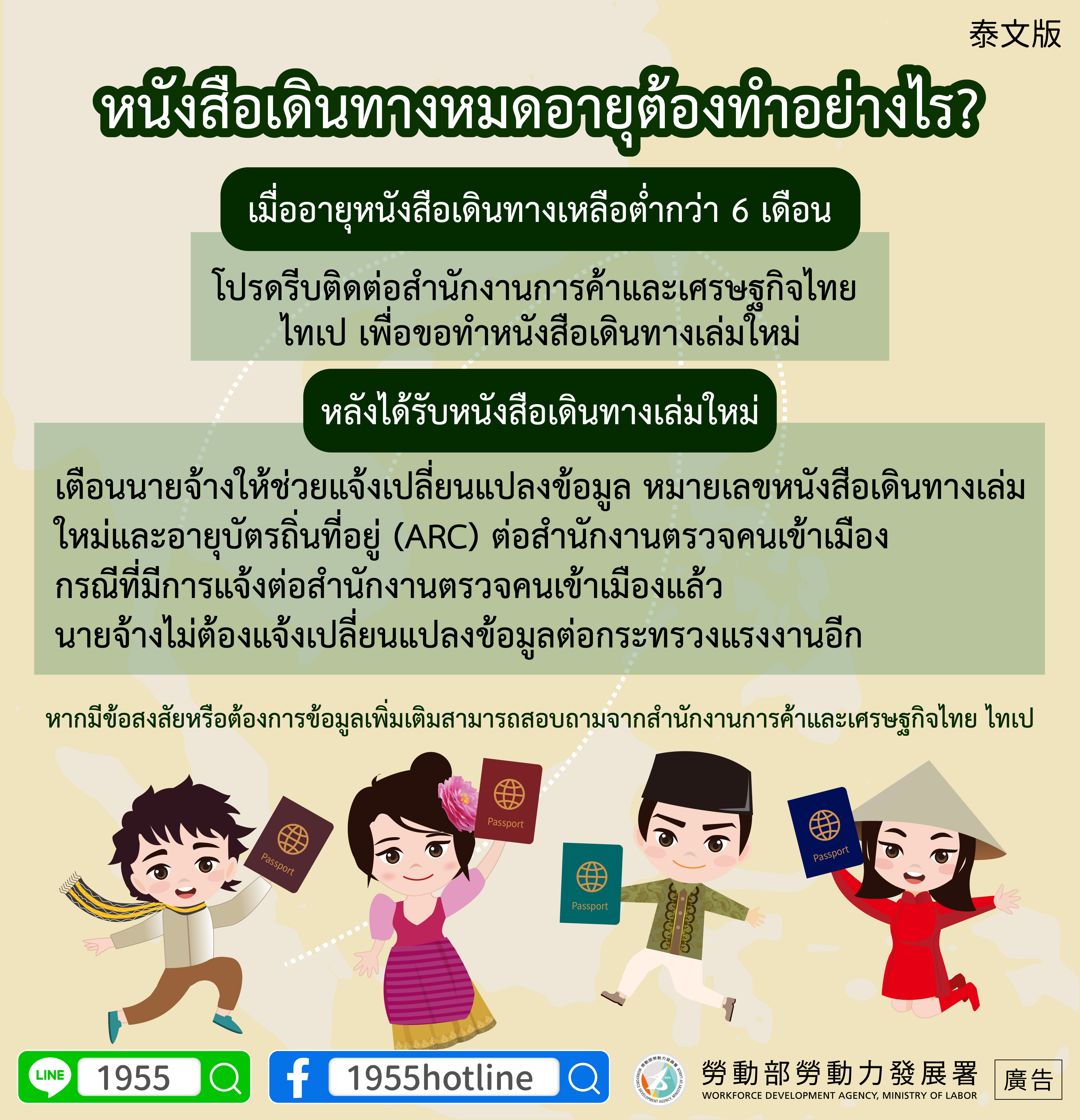 โปรดรีบติดต่อสำนักงานการค้าและเศรษฐกิจไทย ไทเป เพื่อขอทำหนังสือเดินทางเล่มใหม่