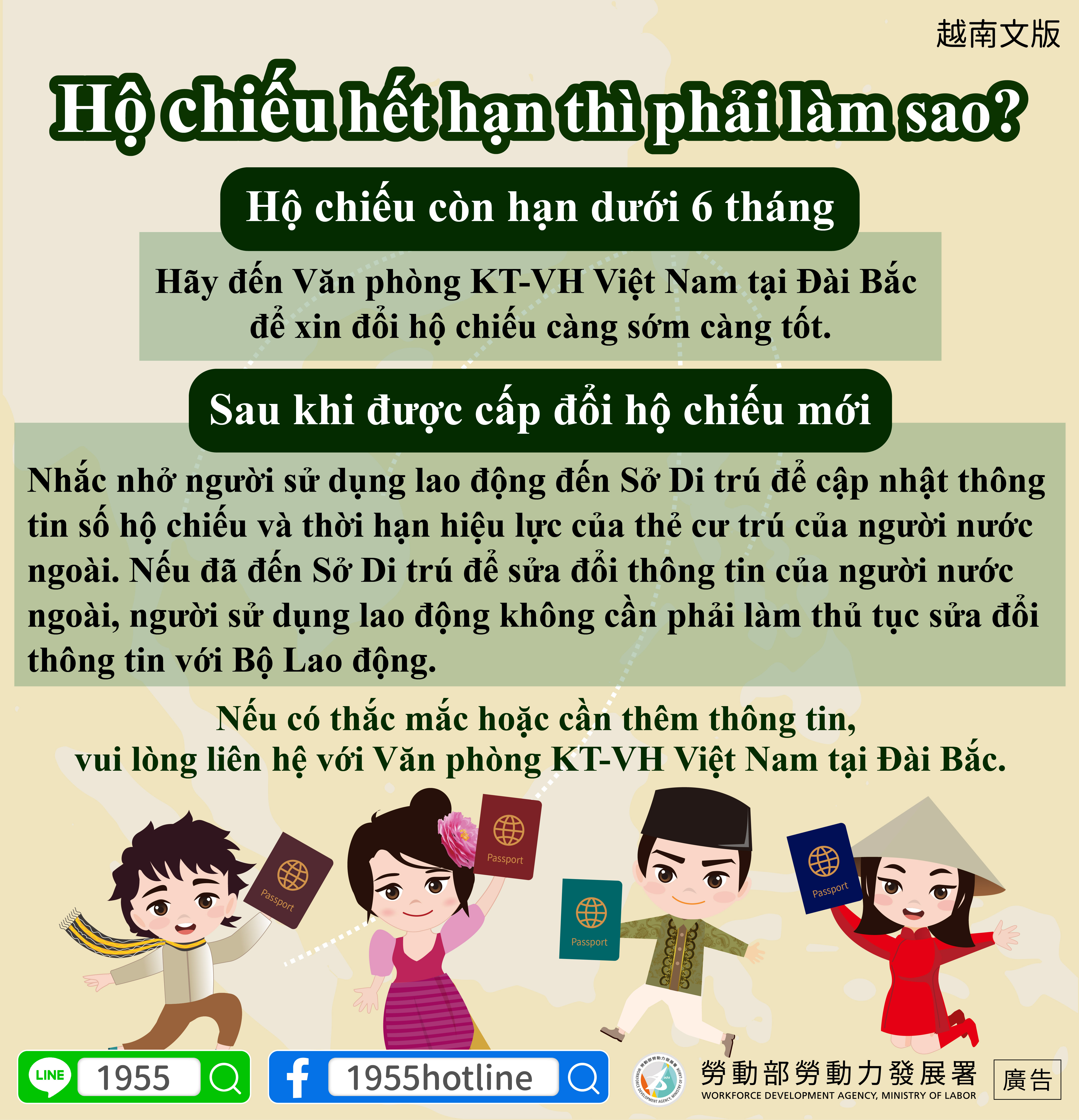 Hãy đến Văn phòng KT-VH Việt Nam tại Đài Bắc để xin đổi hộ chiếu càng sớm càng tốt.