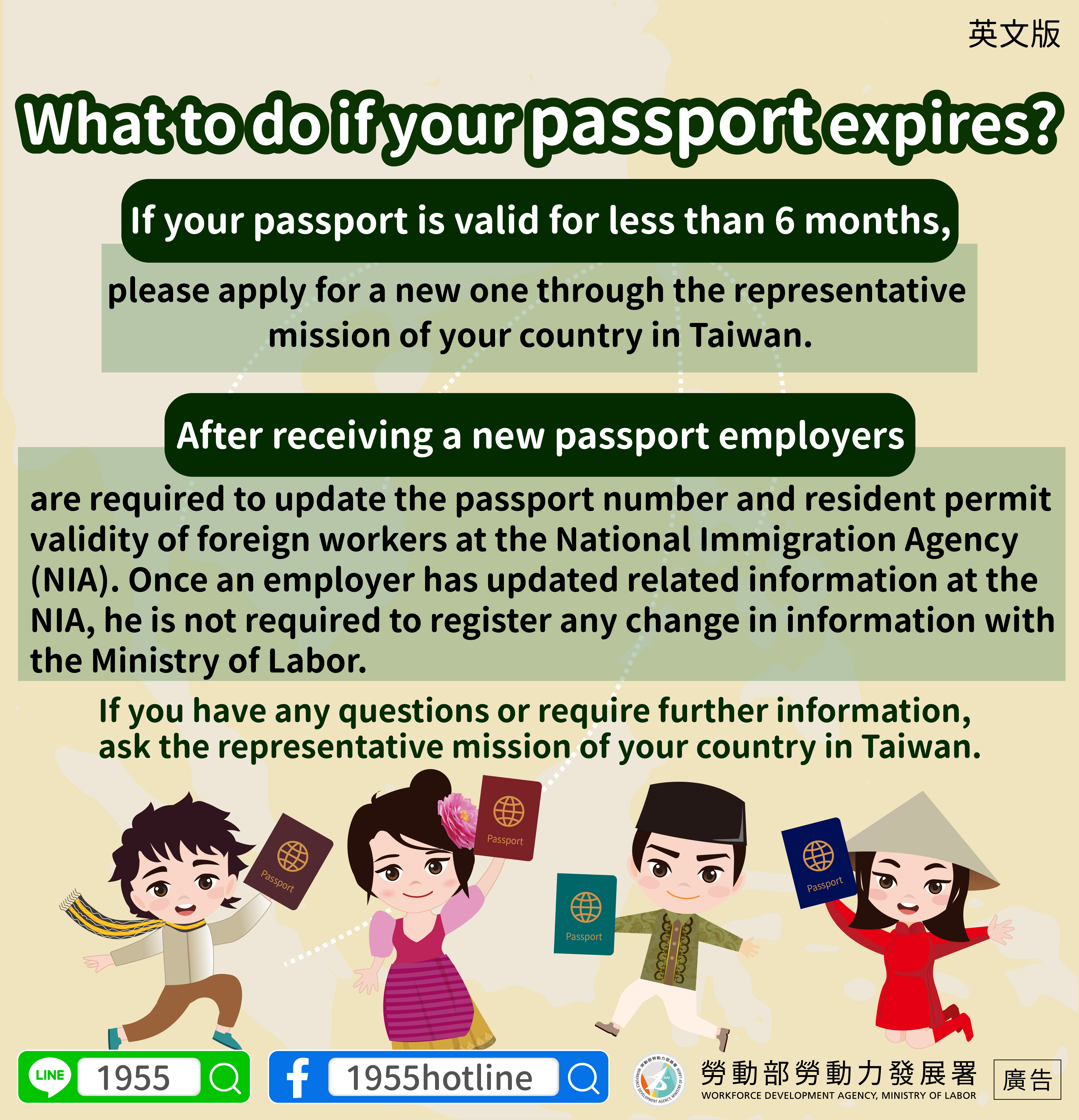 Segera menghubungi kantor perwakilan masing-masing negara di Taiwan untuk pengurusan perpanjangan paspor