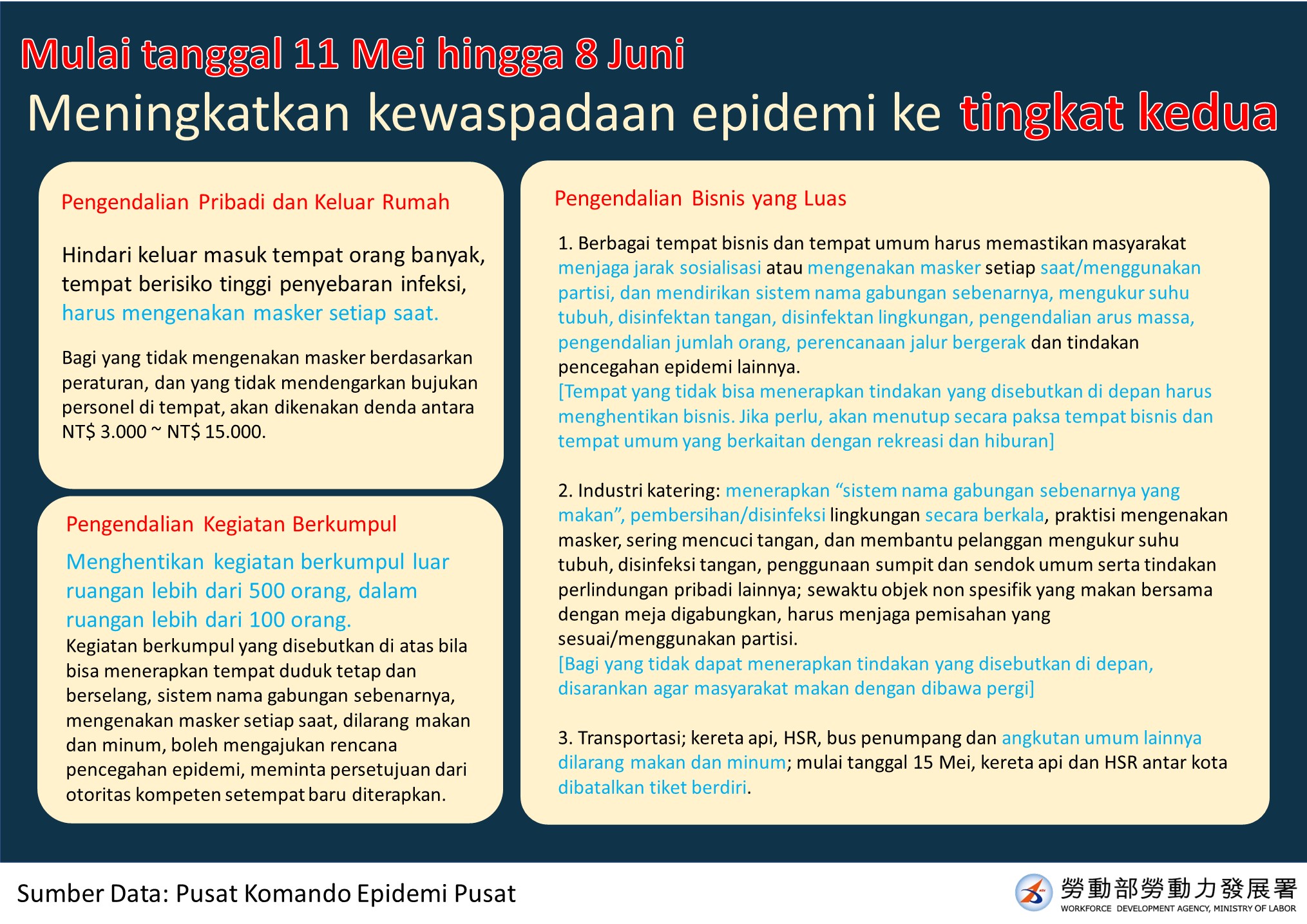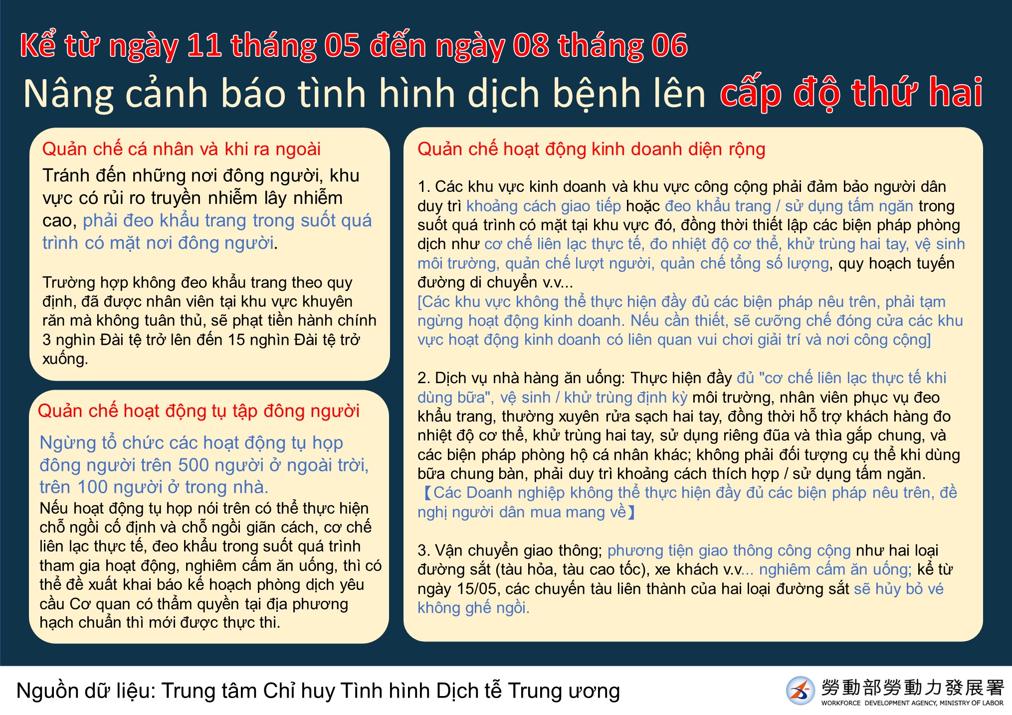 5月11日起至6月8日,提升疫情警戒至第二級-多國語宣導