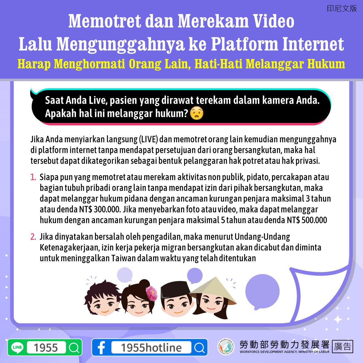LINE@移點通-拍照錄影上傳網路平臺請尊重他人 小心觸法-多國語版本
