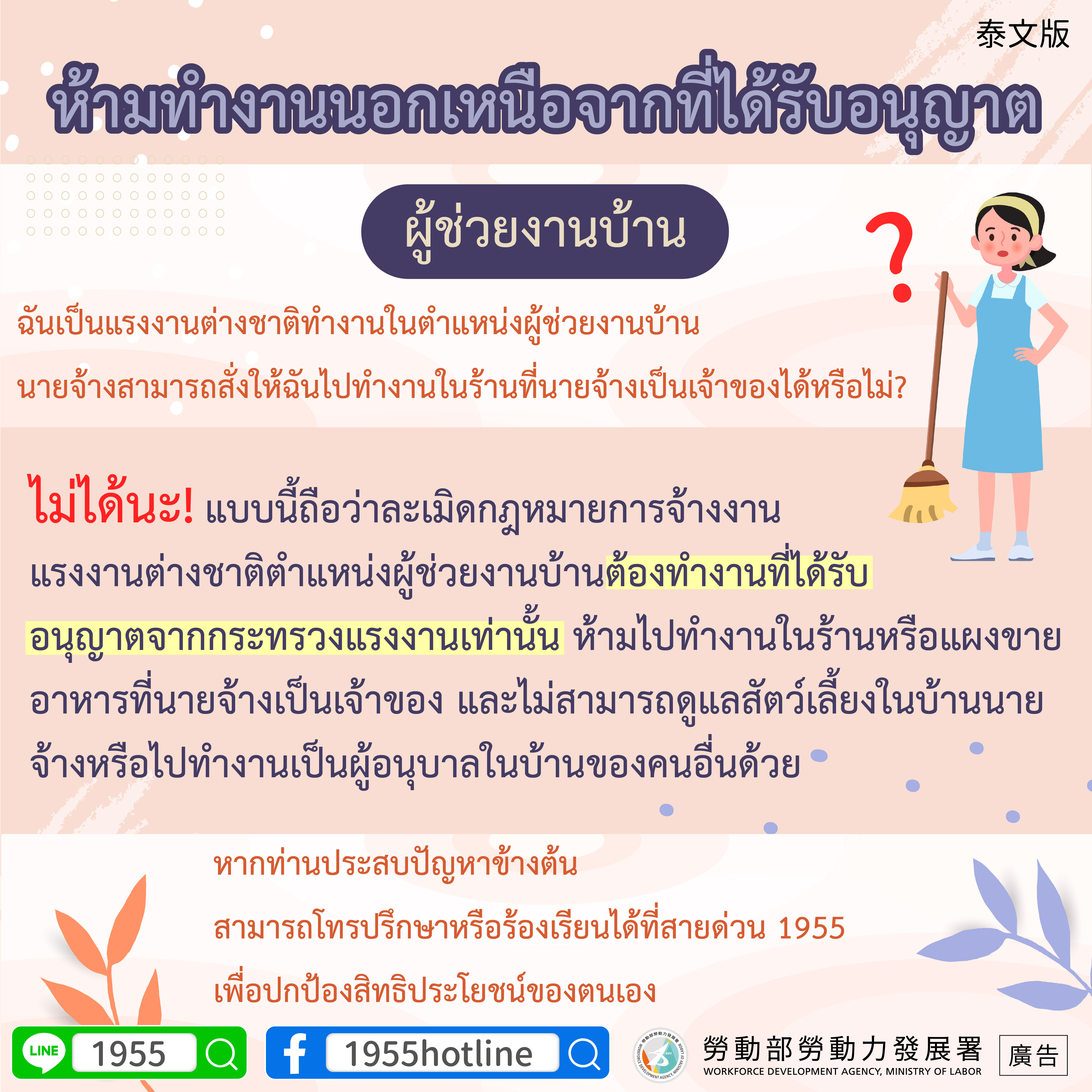 ▍ห้ามทำงานนอกเหนือจากที่ได้รับอนุญาต - ผู้ช่วยงานบ้าน