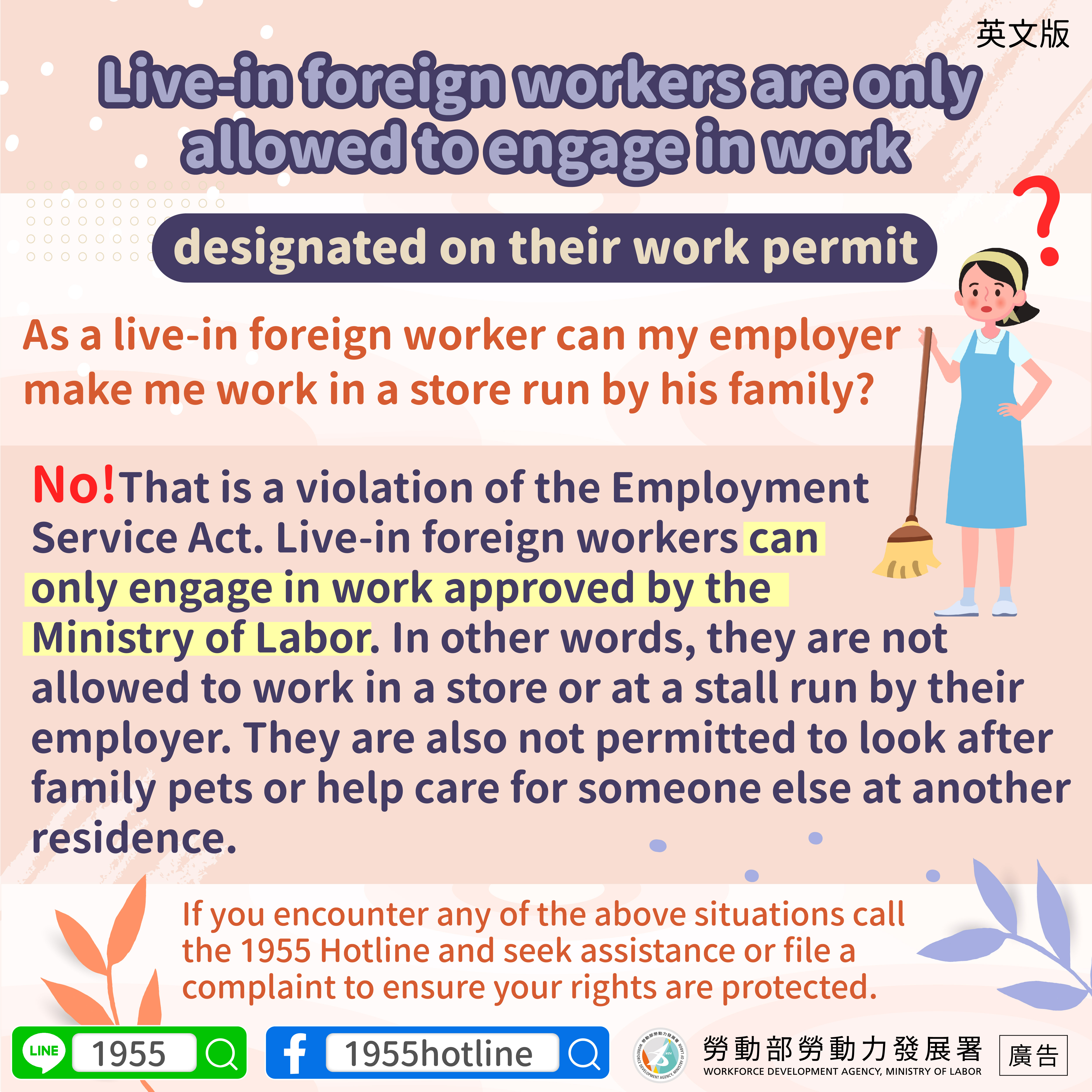 ▍Live-in foreign workers are only allowed to engage in work-designated on their work permit