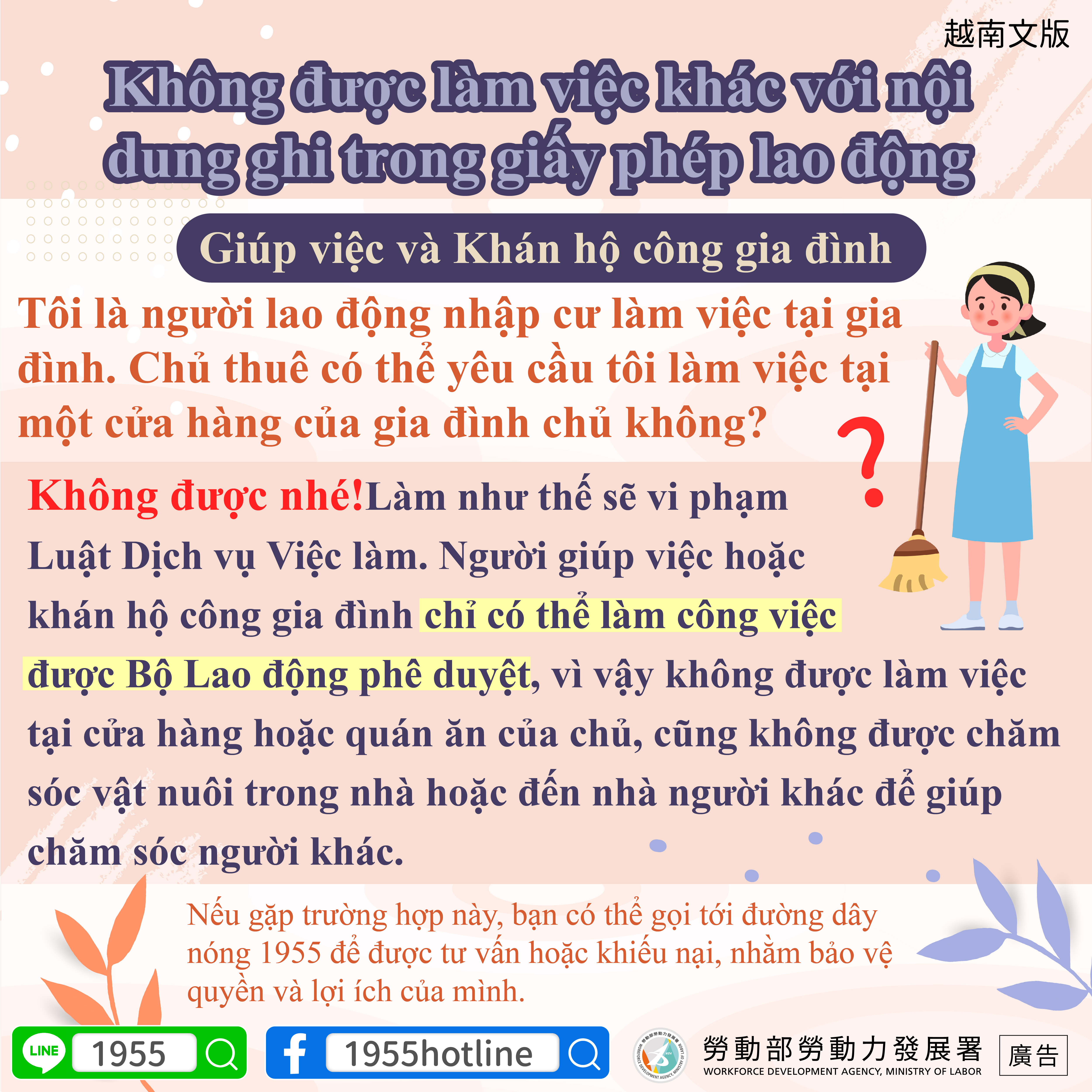 ▍Không được làm việc khác với nội dung ghi trong giấy phép lao động - Giúp việc và Khán hộ công gia đình