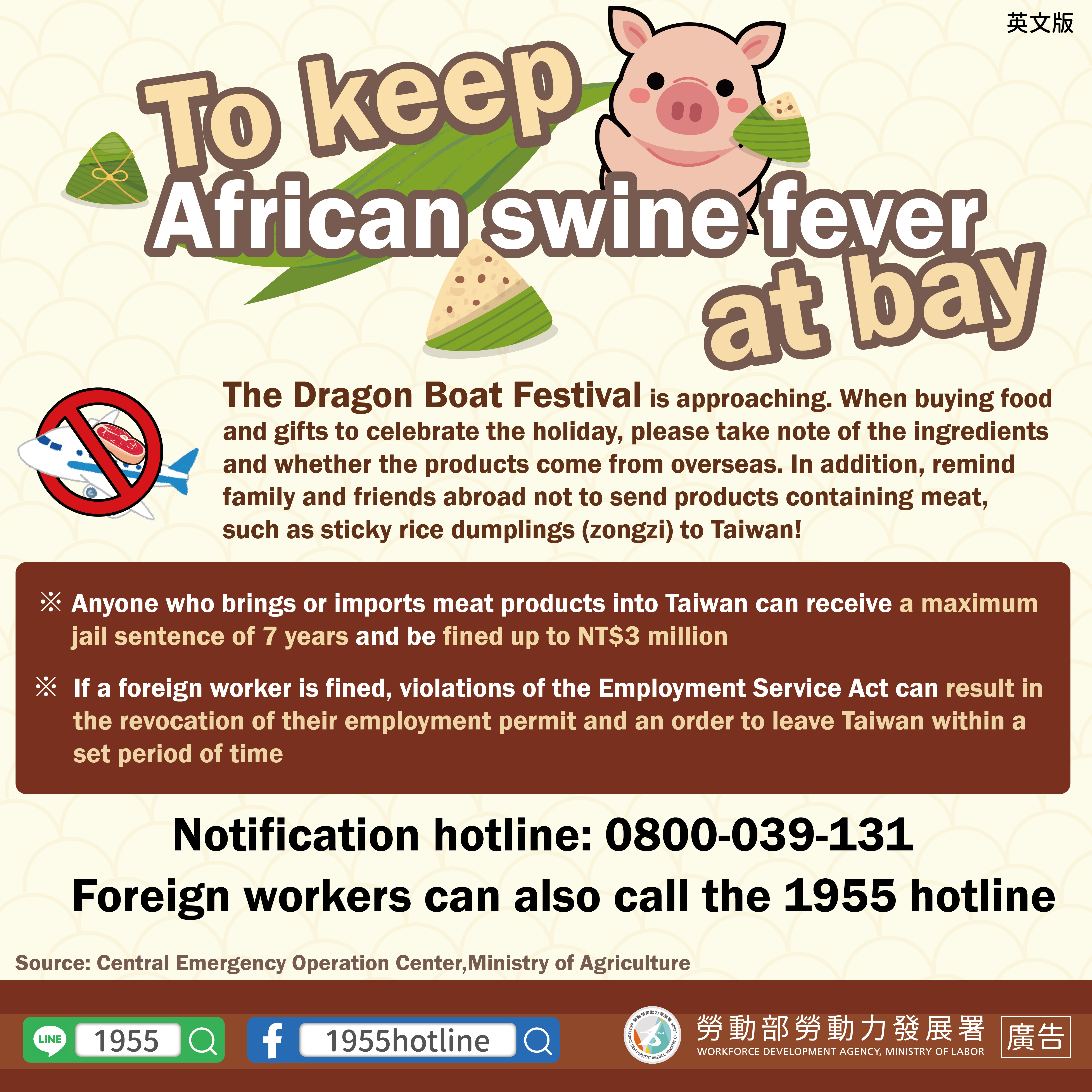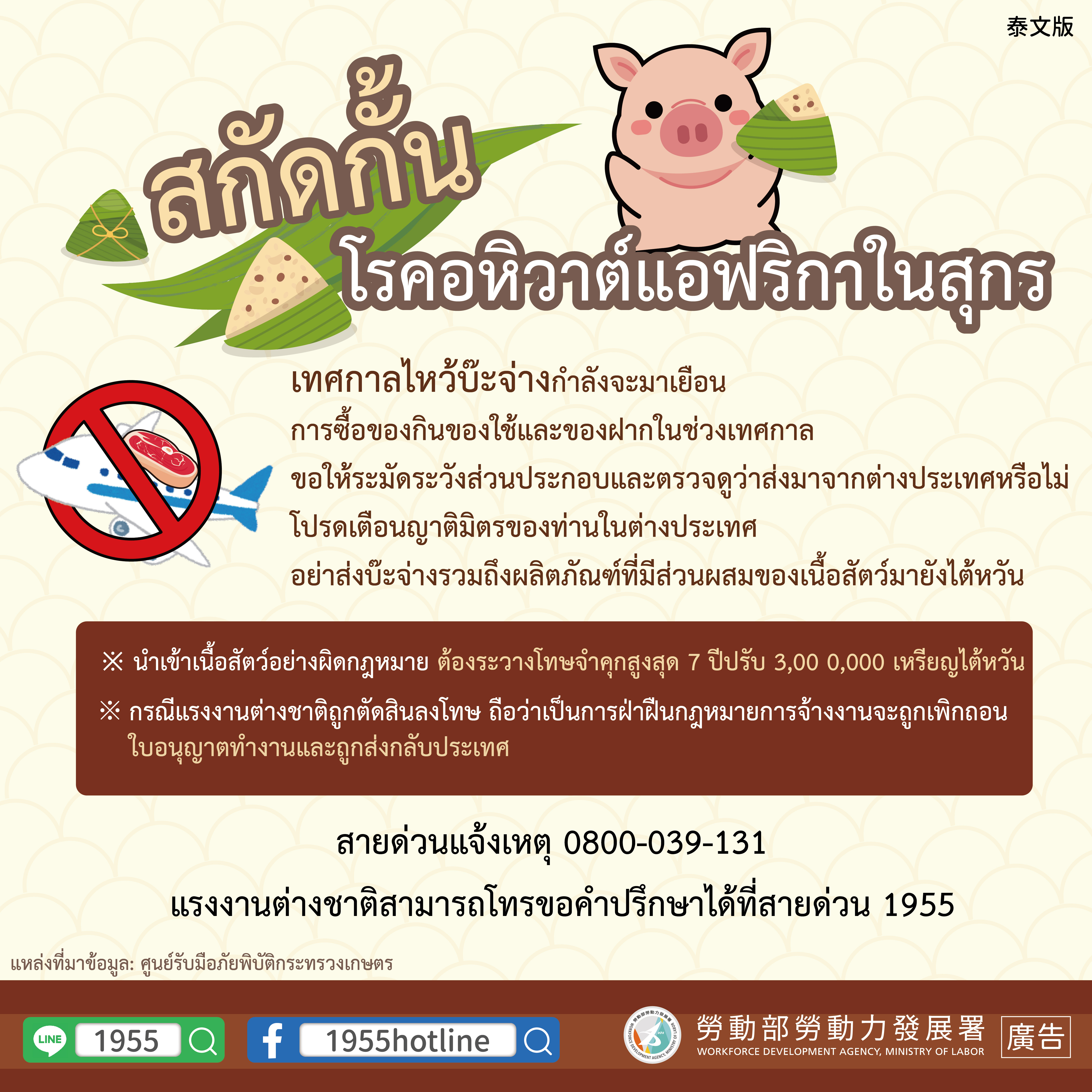 อย่าส่งบ๊ะจ่างรวมถึงผลิตภัณฑ์ที่มีส่วนผสมของเนื้อสัตว์มายังไต้หวัน