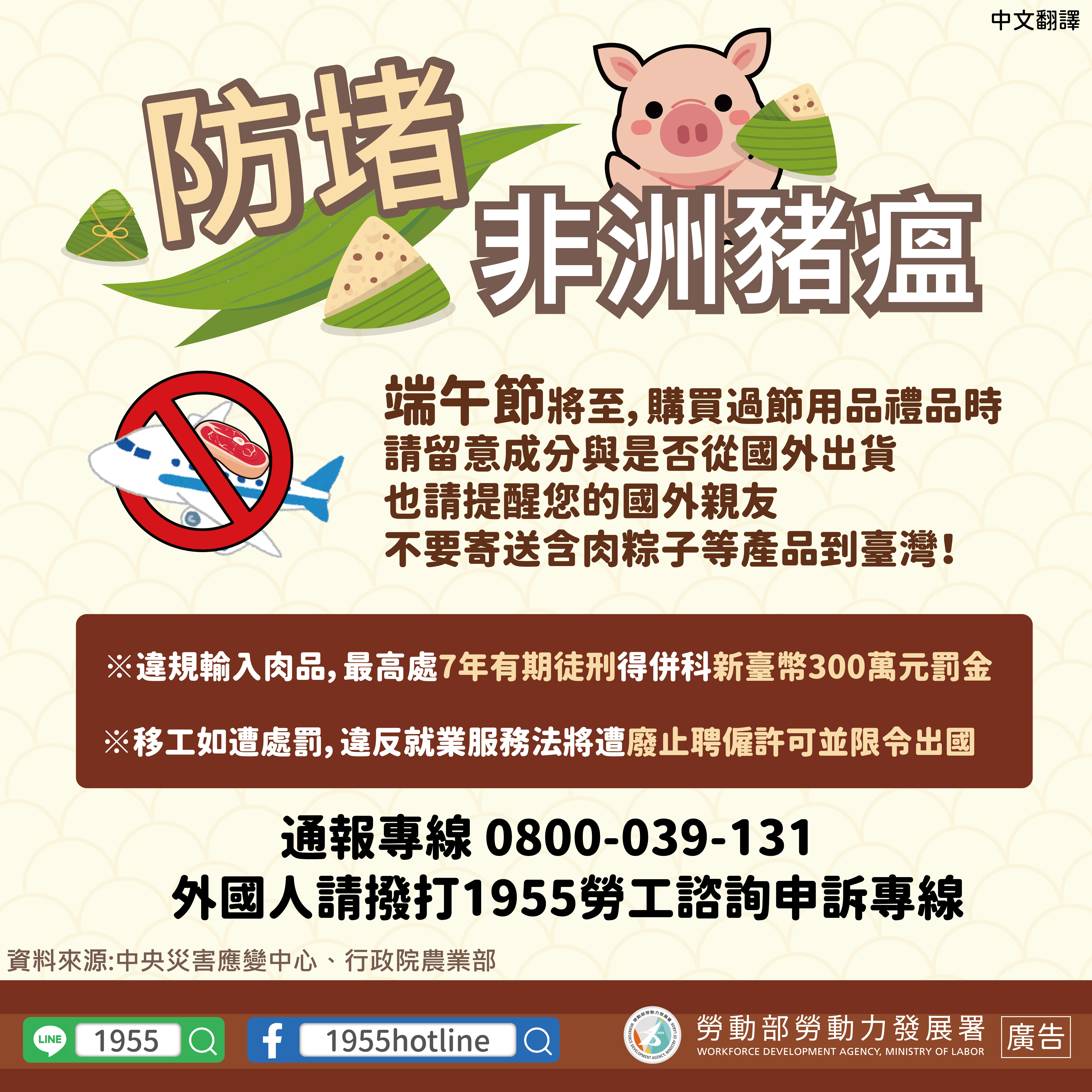 ※ Anyone who brings or imports meat products into Taiwan can receive a maximum
