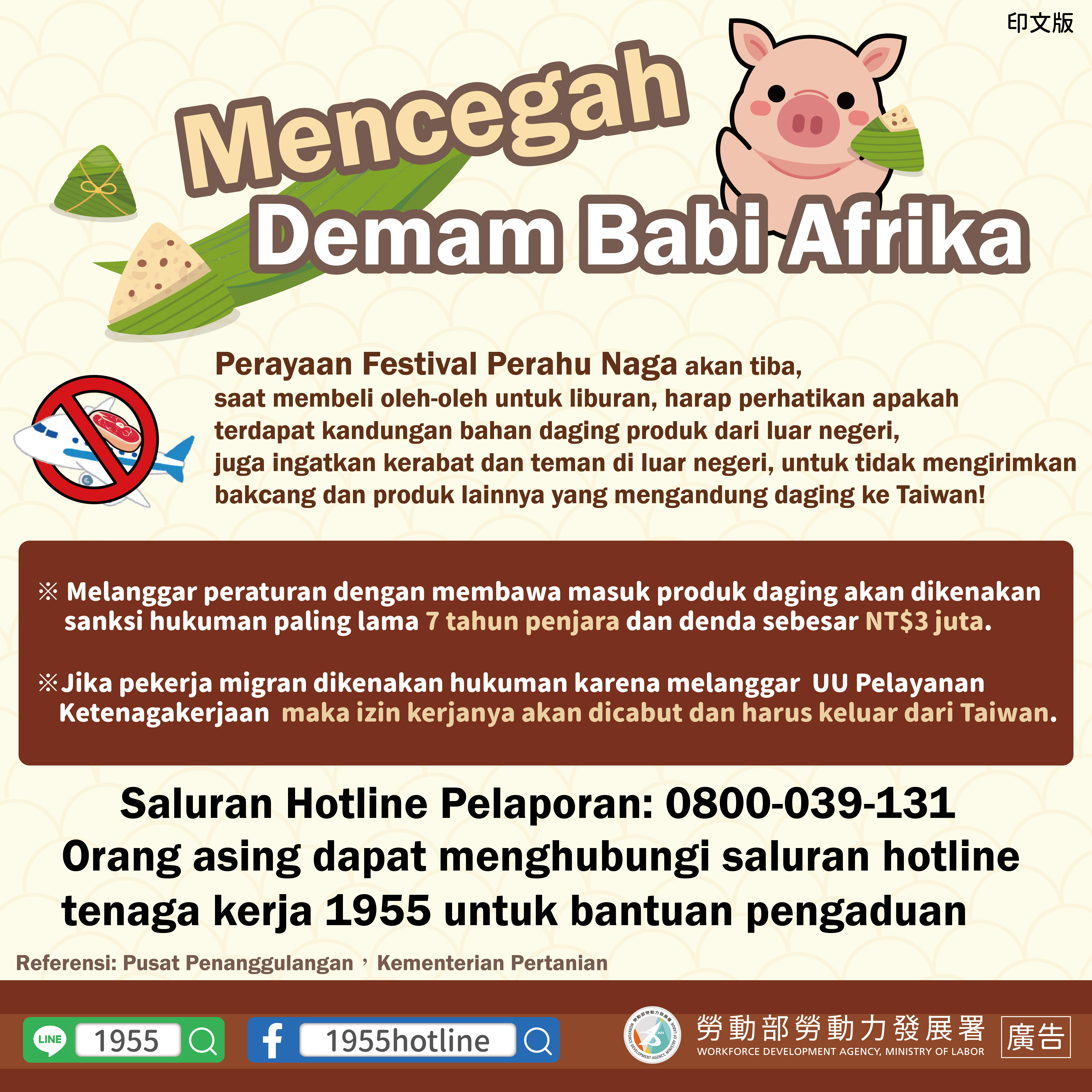 bakcang dan produk lainnya yang mengandung daging ke Taiwan!
