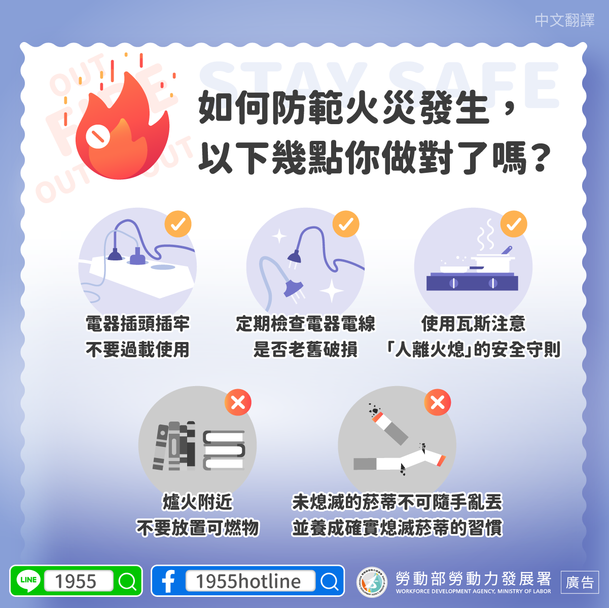 LINE@移點通-如何防範火災發生,以下幾點你做對了嗎?【防範火災發生】-多國語言版