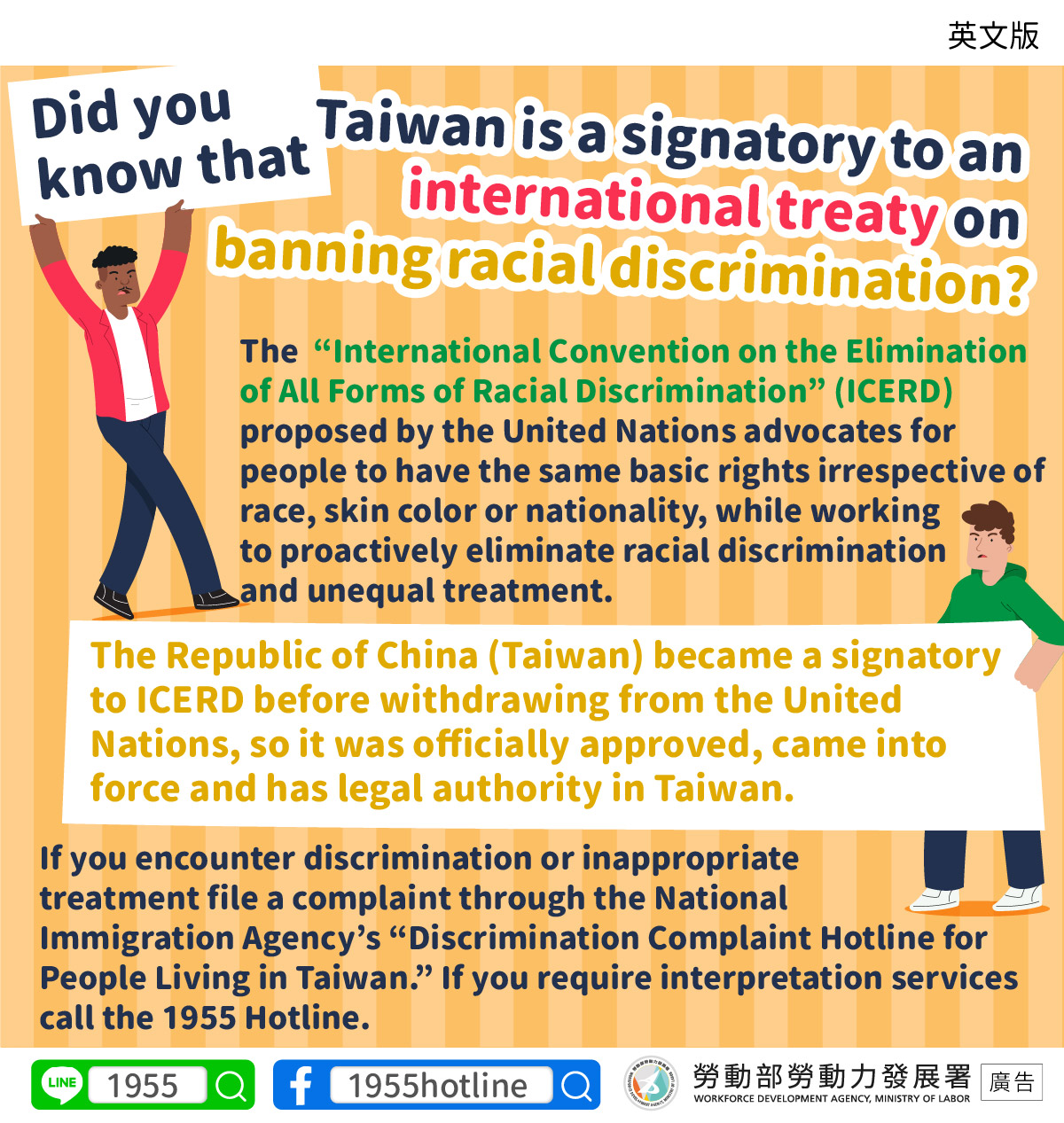 ▍Did you know that Taiwan is a signatory to an international treaty on banning racial discrimination?