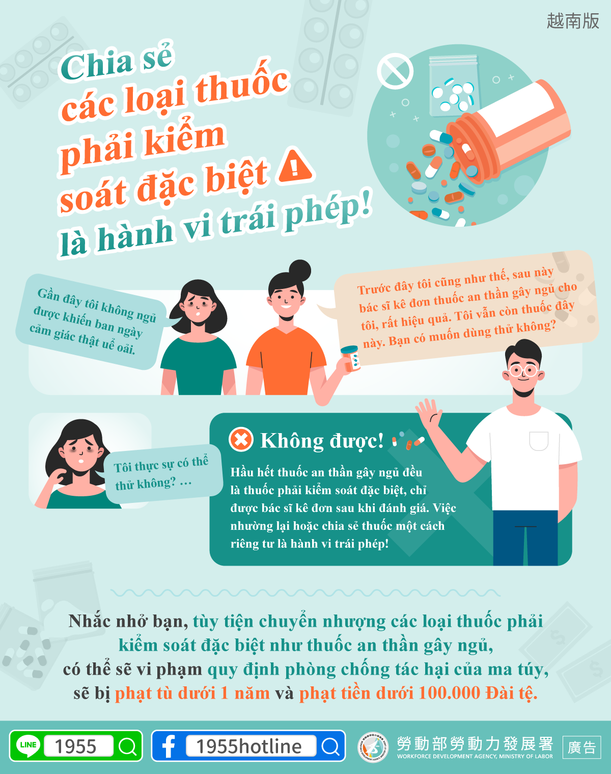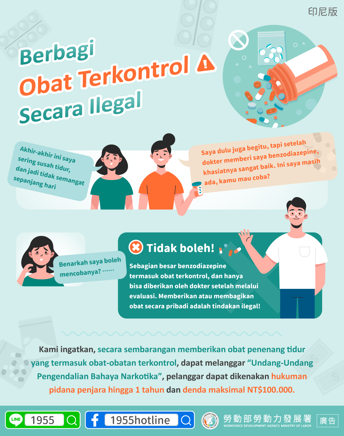 Kami ingatkan, secara sembarangan memberikan obat penenang tidur yang termasuk obat-obatan terkontrol, dapat melanggar “Undang-Undang Pengendalian Bahaya Narkotika”, pelanggar dapat dikenakan hukuman pidana penjara hingga 1 tahun dan denda maksimal NT$100.000.