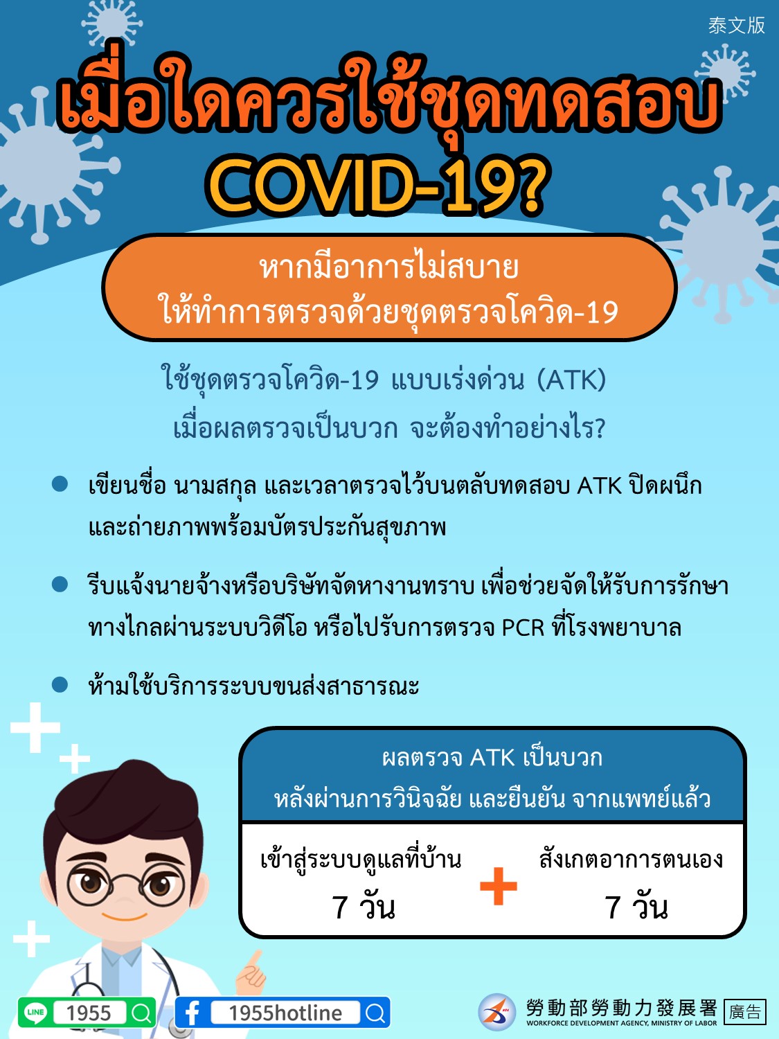 2. รีบแจ้งนายจ้างหรือบริษัทจัดหางานทราบ เพื่อช่วยจัดให้รับการรักษาทางไกลผ่านระบบวิดีโอ หรือไปรับการตรวจ PCR ที่โรงพยาบาล